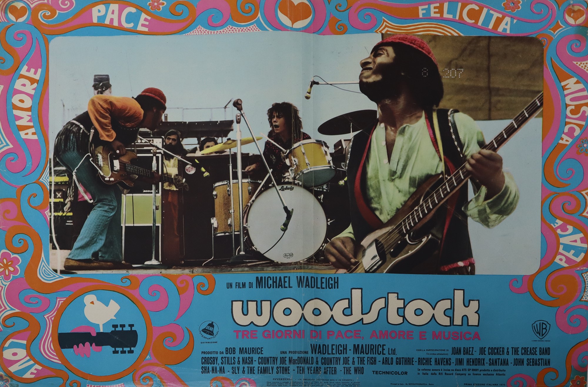 Fotobusta ''Woodstock tre giorni di pace, amore e musica'', 1970 cm 50 x cm 70 Prima Edizione Italiana, normali segni d'uso