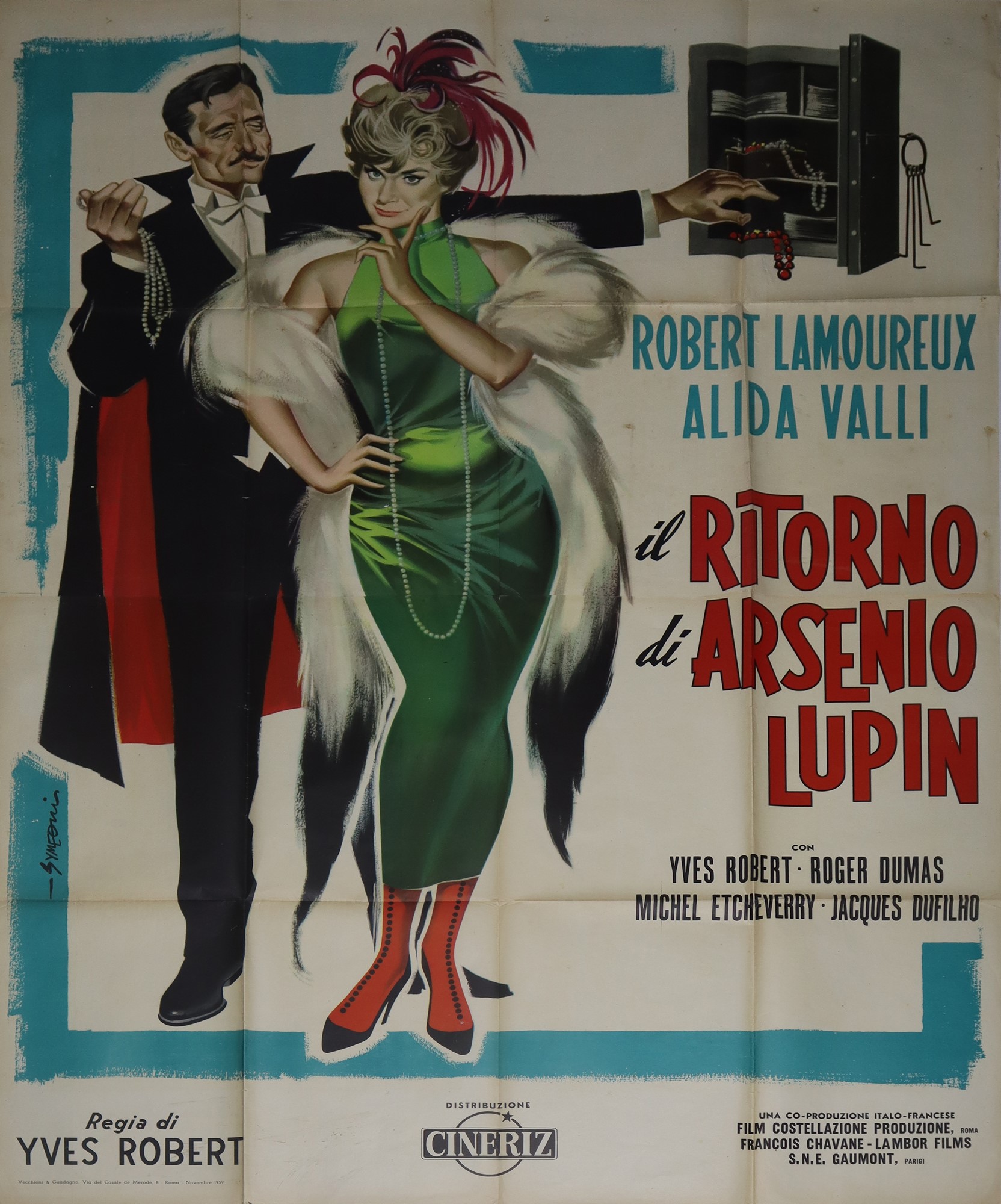 Sandro Symeoni - Manifesto cinema quattro fogli '''Il ritorno di Arsenio Lupin'', 1959