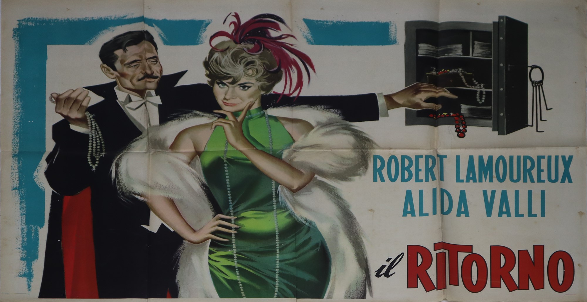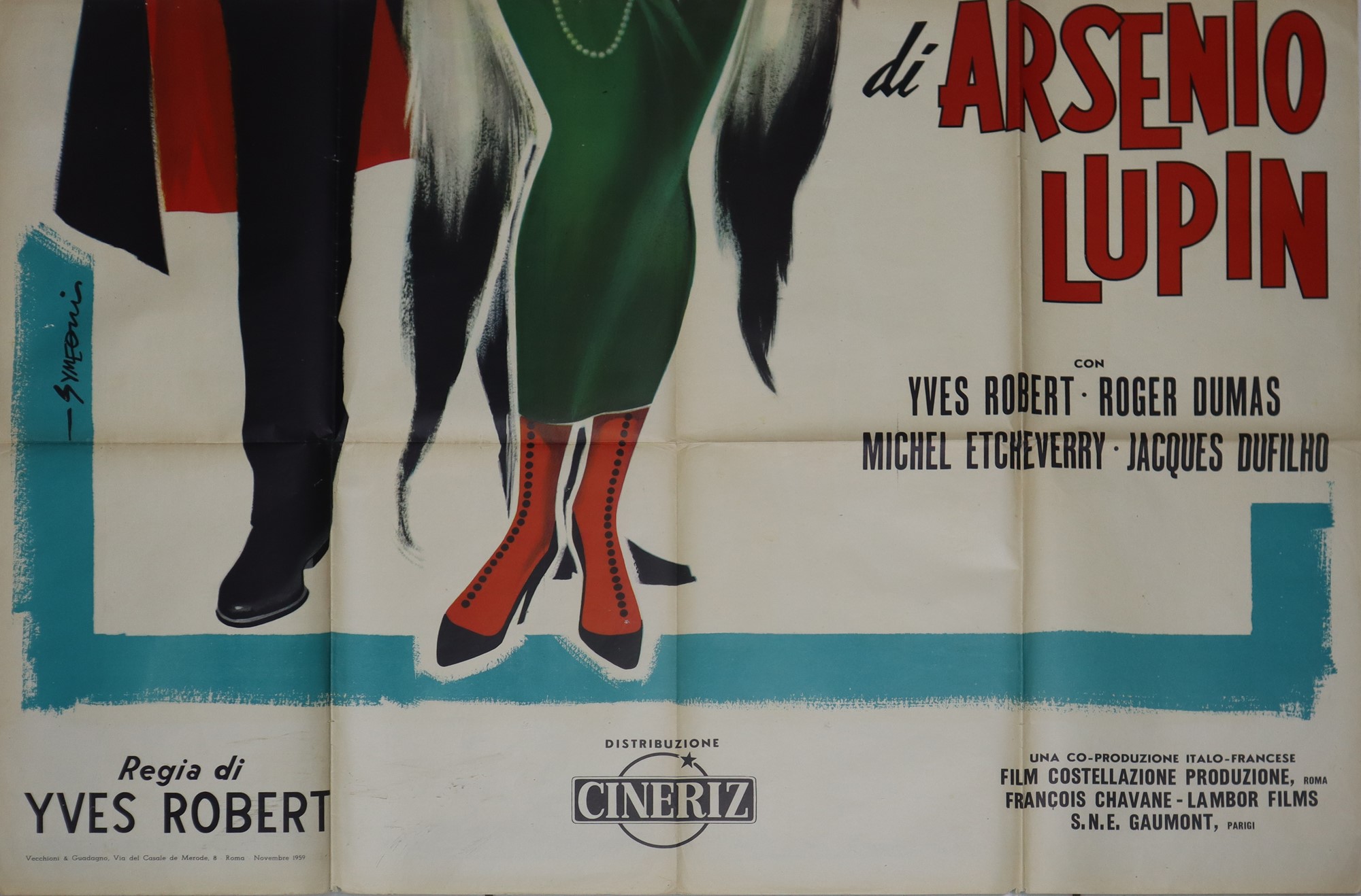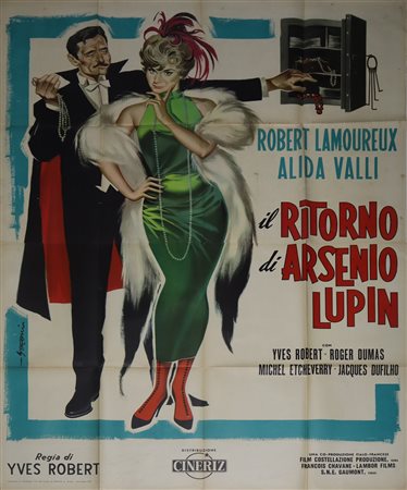 Sandro Symeoni - Manifesto cinema quattro fogli '''Il ritorno di Arsenio Lupin'', 1959 cm 140 x cm 200 Prima Edizione Italiana, normali segni d'uso