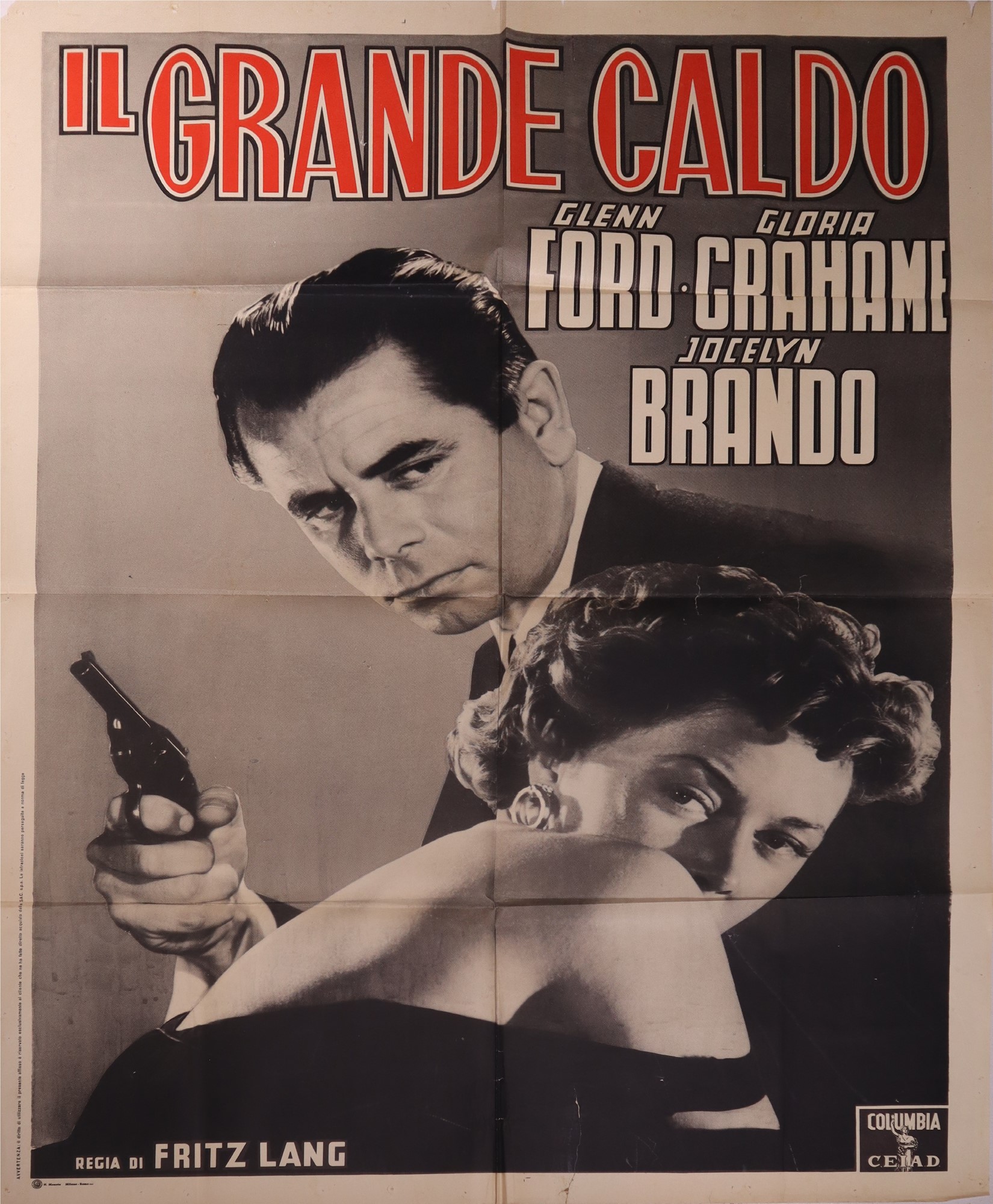 Manifesto cinema due fogli noir '''Il grande caldo'', 1962 cm 100 x cm 140 Fritz Lang, artista Fiorenzi, Seconda Edizione Italiana