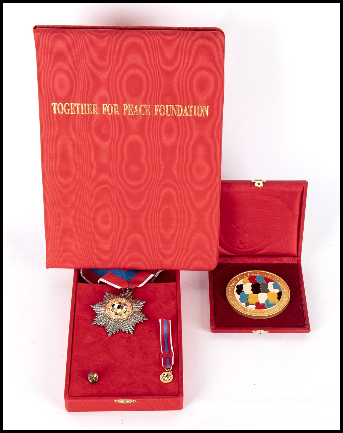 Lotto composto da una onorificenza per Commendatore in argento ed un medaglione, in scatole originali, con cartellina per attestato (vuota)
