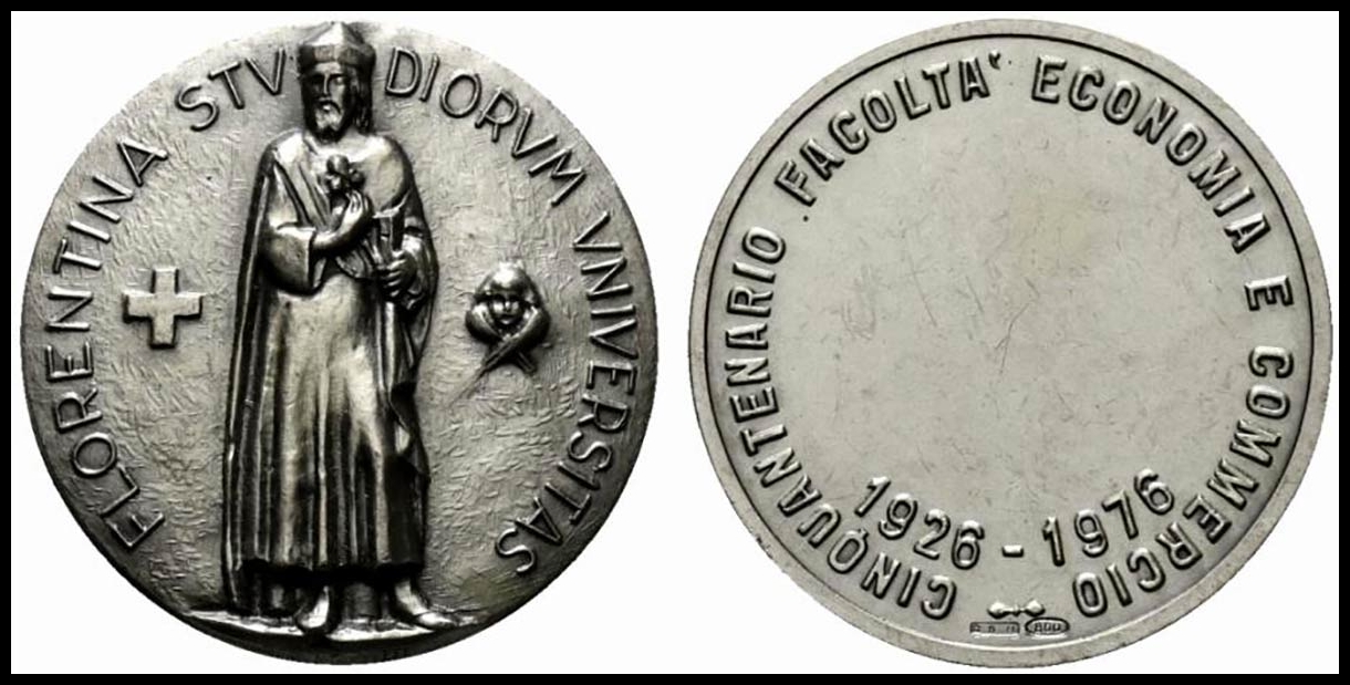 FIRENZE. Florentina Stvdiorvm Vniversitas. Medaglia Cinquantenario Facoltà Economia e Commercio 1926-1976. Ag (17,28 g - 35,4 mm)