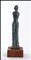 Scultura in ceramica patinata verde con base in legno, h. 42 cm