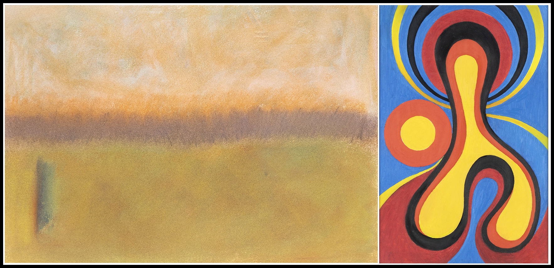 Lotto di due composizioni originali "Tramonto" pastello su carta 1984 non firmato, "Maternità divina"olio su tela 1975, firmato (Esposto ad Hong Kong 1993). In cornice