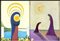 Lotto di due composizioni originali "Maternità" olio su tela 1991 firmata, "Annunciazione al chiaro di luna" tecnica mista su carta 1996 non firmata. In cornice