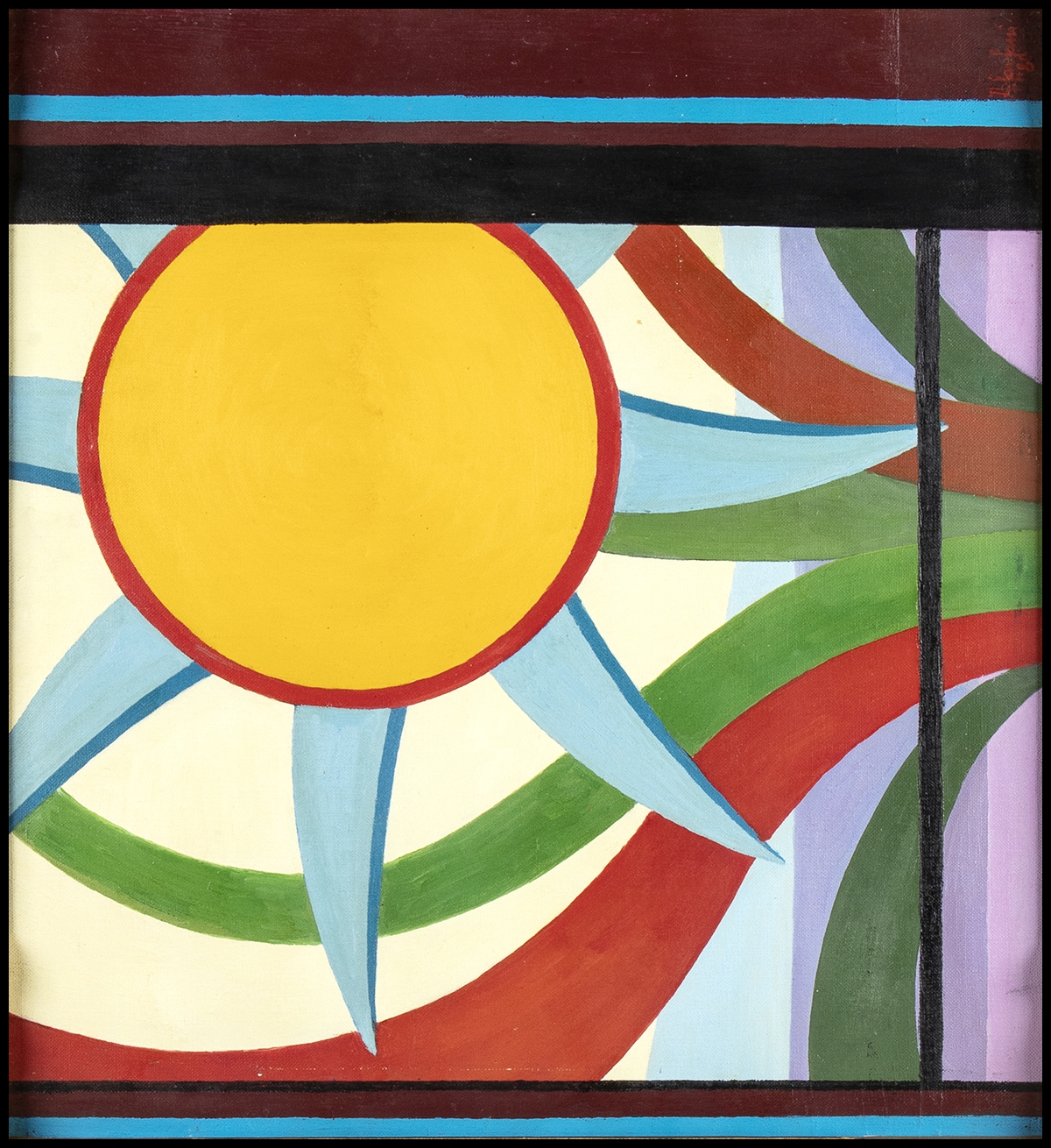 Composizione originale firmata Amintore Fanfani "Fior di sole" acrilico su tela, 1980. In cornice