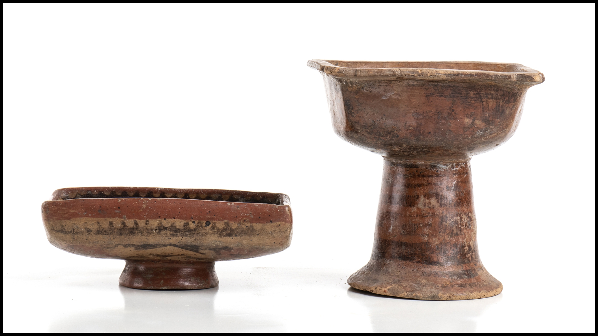 COPPIA DI VASI POLICROMI<br>Colombia, Area di Nariño<br>alt. massima cm 14<br><br>Poche sbeccature sulla coppa ad alto piede.<br><br>Dalla collezione di Maria Pia e Amintore Fanfani.
