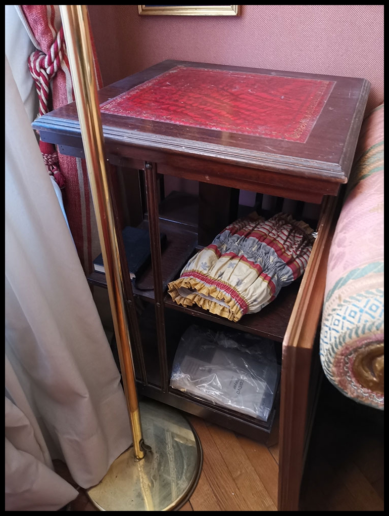 in legno impiallacciato stile inglese. Dimensioni: 49 x 49 x 75 cm.