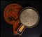 SPECCHIO IN BRONZO CON SUA CUSTODIA IN LEGNO LACCATO, E-KAGAMI<br>Giappone, periodo Meiji