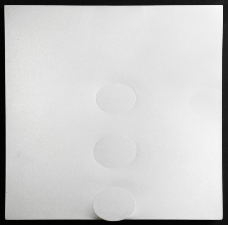 TURI SIMETI (1929-) Tre ovali bianchi 2002 acrilico su tela cm 80x80 inserito nell'archivio Turi Simeti con il n°005338 autentica dell'artista su foto Tre ovali bianchi 2002 acrylic on canvas inch 31,52x31,52 included in Turi Simeti archive with n°005338 photo certificate from the arti...