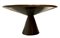 Importante tavolo con struttura in legno impiallacciata noce e finitura lucida, 70's h cm 70, diametro cm 135 Produzione italiana nello stile di Angelo Mangiarotti. Piede tronco conico e piano rotondo rivestito in panno nei toni del senape. Segni di uso.