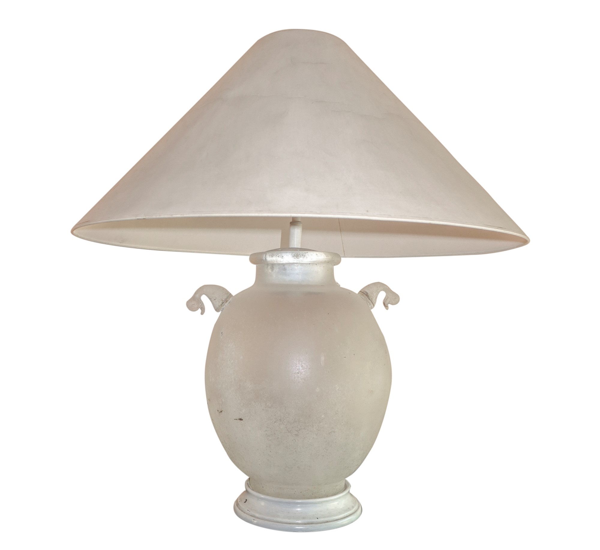 Lume da tavolo in vetro satinato h cm 75 Con paralume tronco-conico, base in metallo.