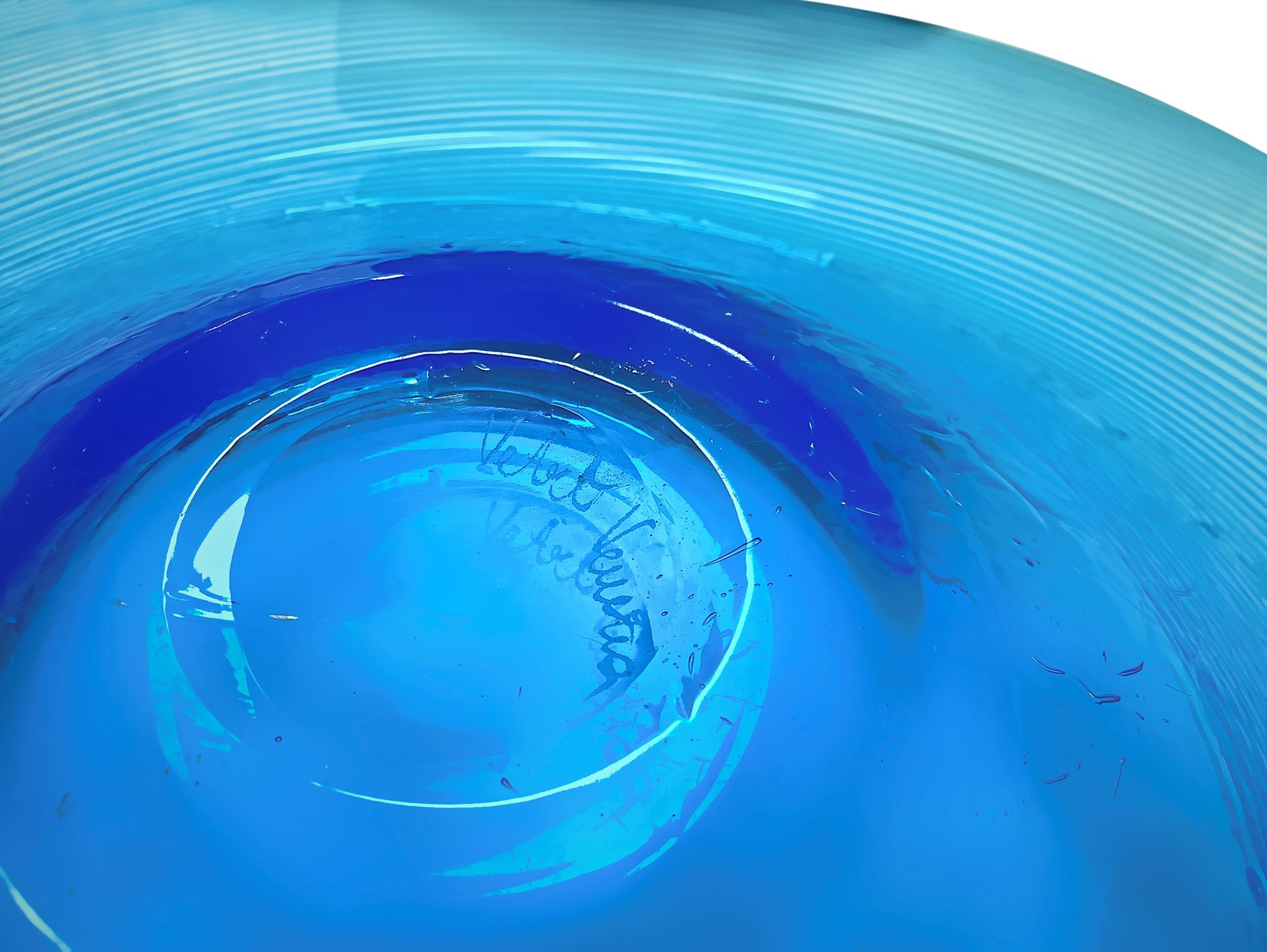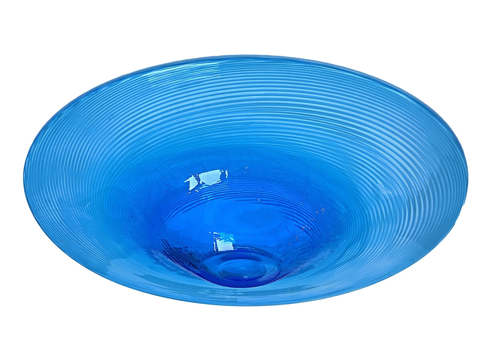 Veart (Venezia) - Importante centrotavola in vetro pesante h cm 5, diametro cm 42 Nei toni dell’azzurro riportante mezza filigrana lungo la tesa diametro