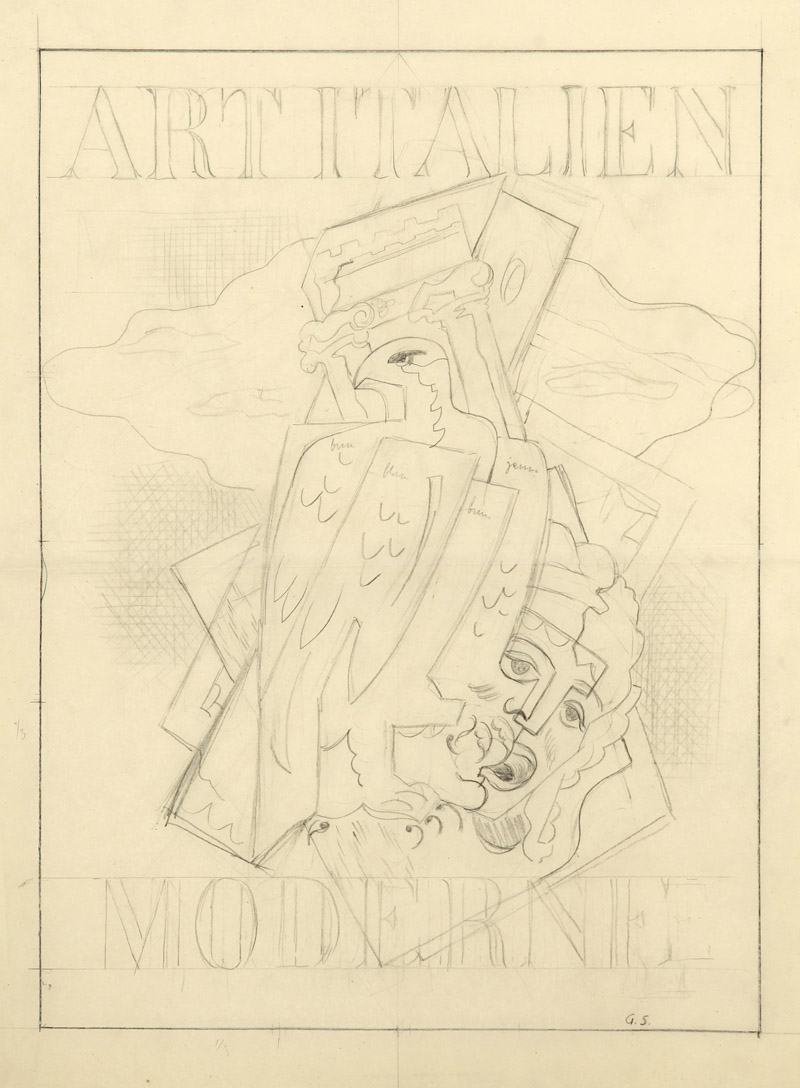 GINO SEVERINI (1883-1966) Art Italien Moderne, studio per la copertina 1930 matita su carta lucida cm 42x32 firmato in basso a destra Art Italien Moderne, studio per la copertina 1930 pencil on glossy paper inch 16,55x12,61 signed lower right