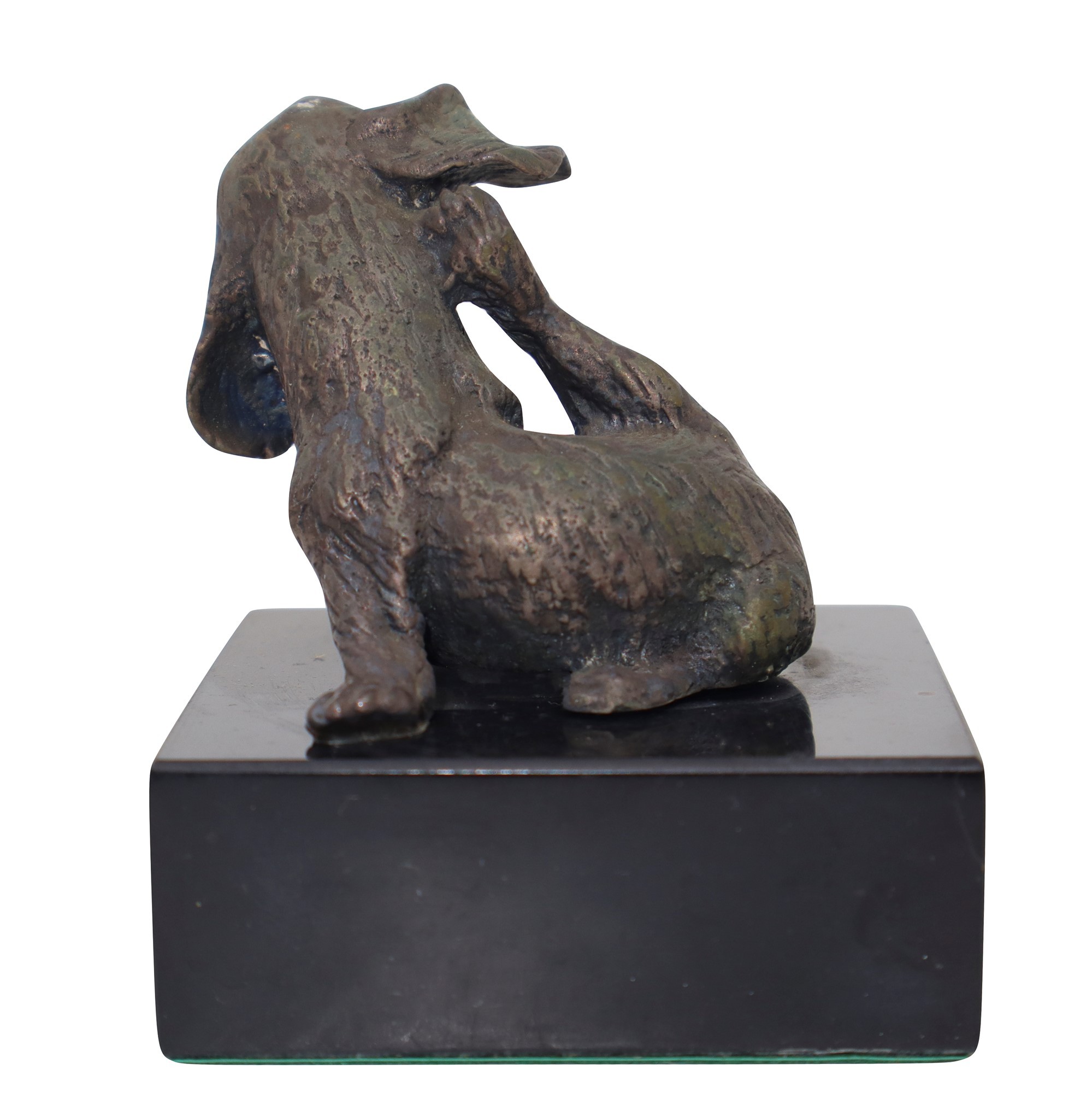 Cagnolino che si gratta cm 7,5 + base cm 2,5 Scultura con base in marmo nero