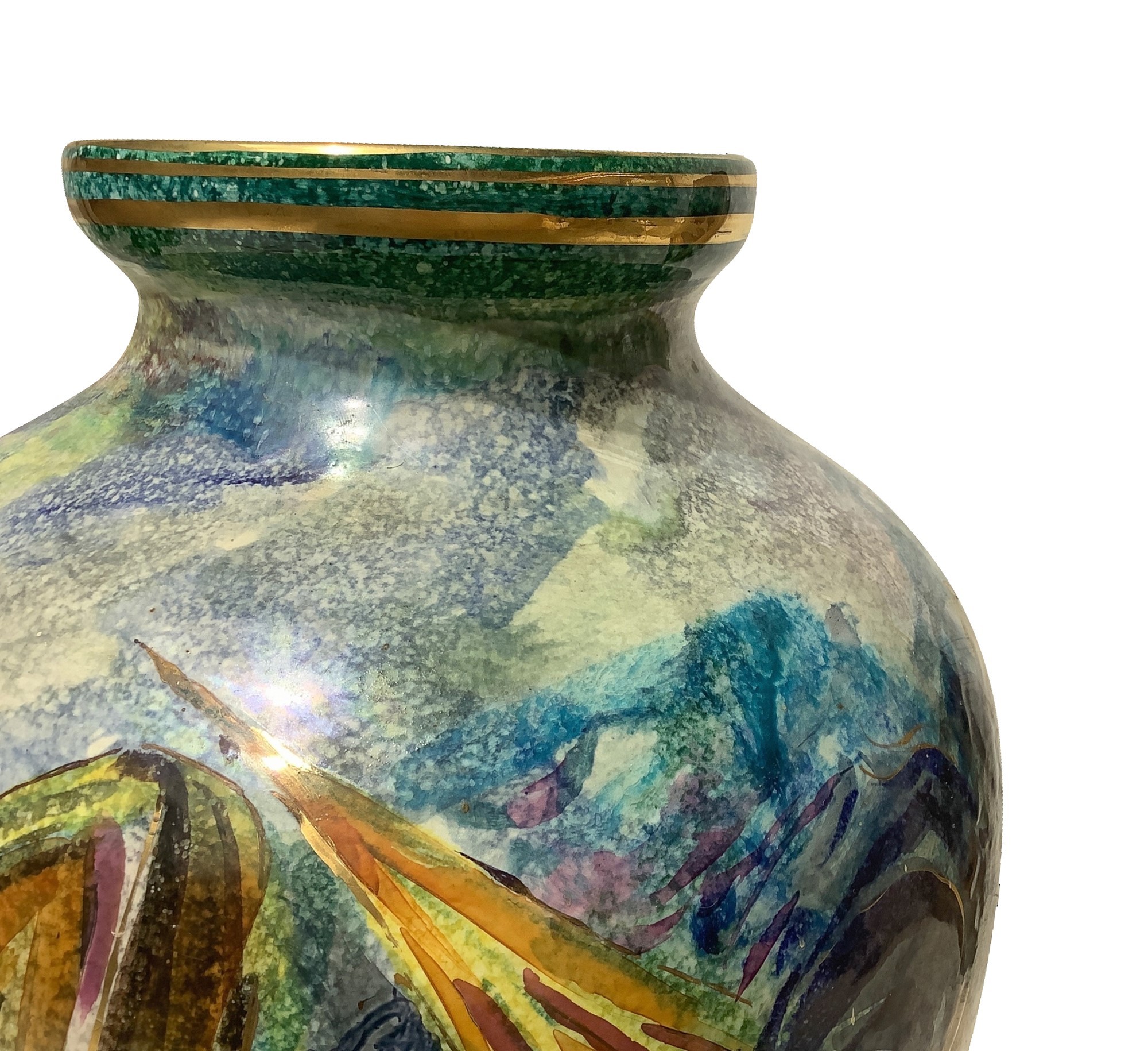 Zulimo Aretini (Monte San Savino (Arezzo) 1884-Roma 1965) - Vaso in ceramica dipinta policroma e dorata , 1950s