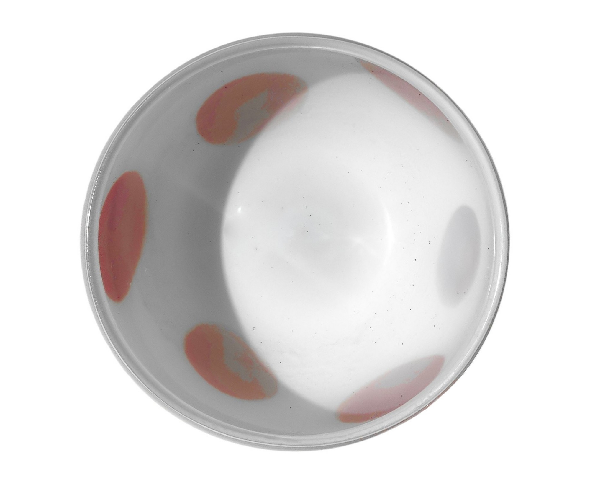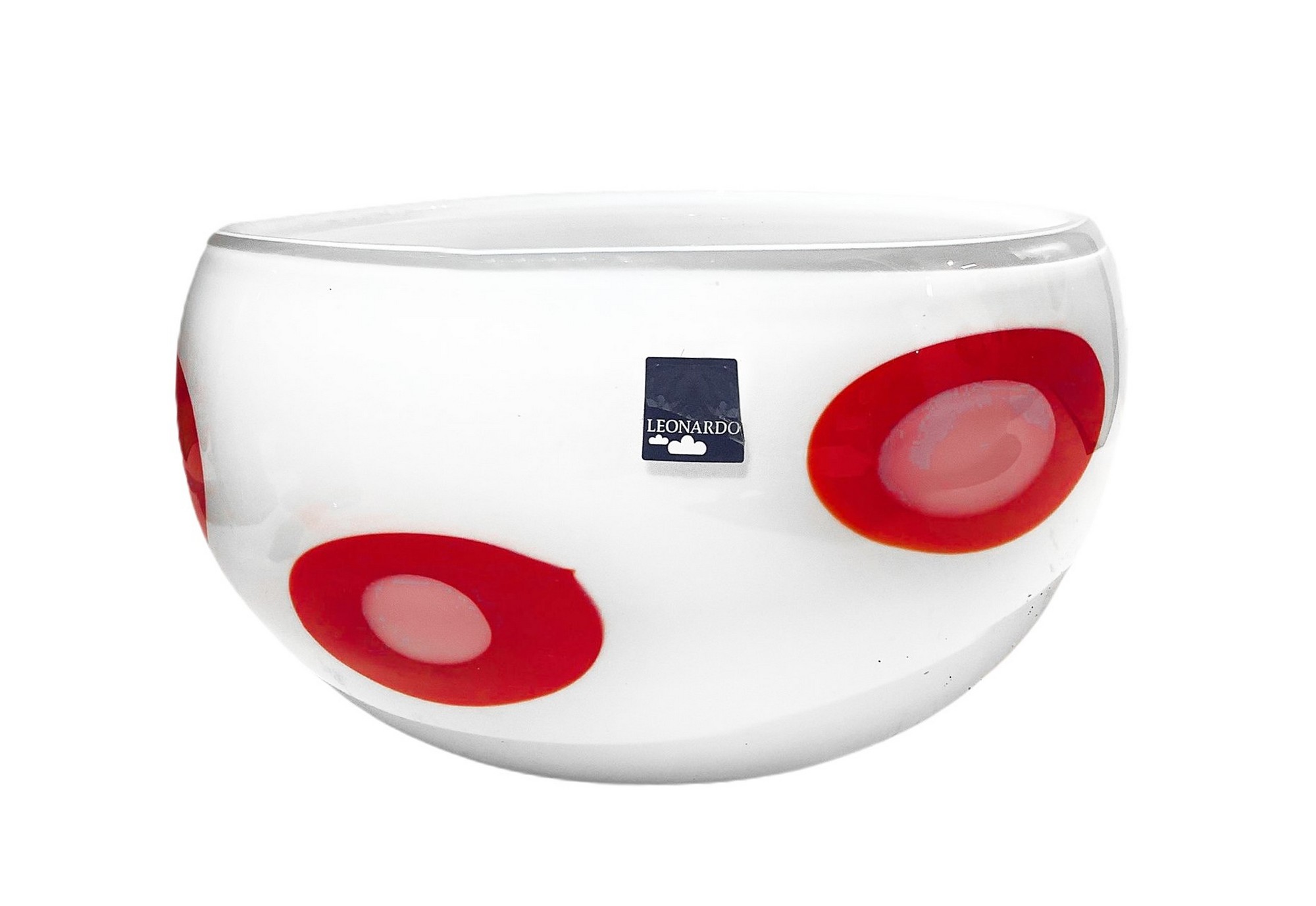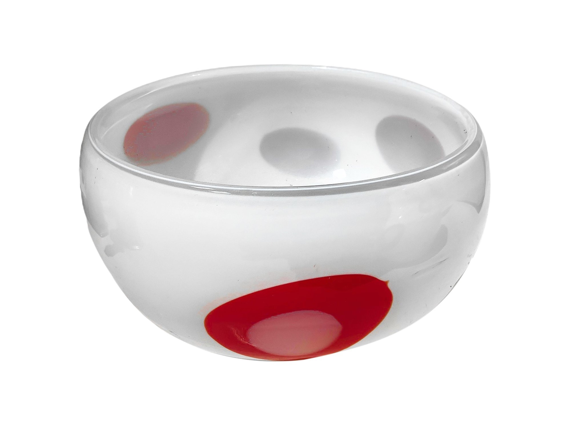 Vaso in vetro di Murano h cm 12,5; diametro cm 21 Colore bianco lattimo con decorazione in rosso