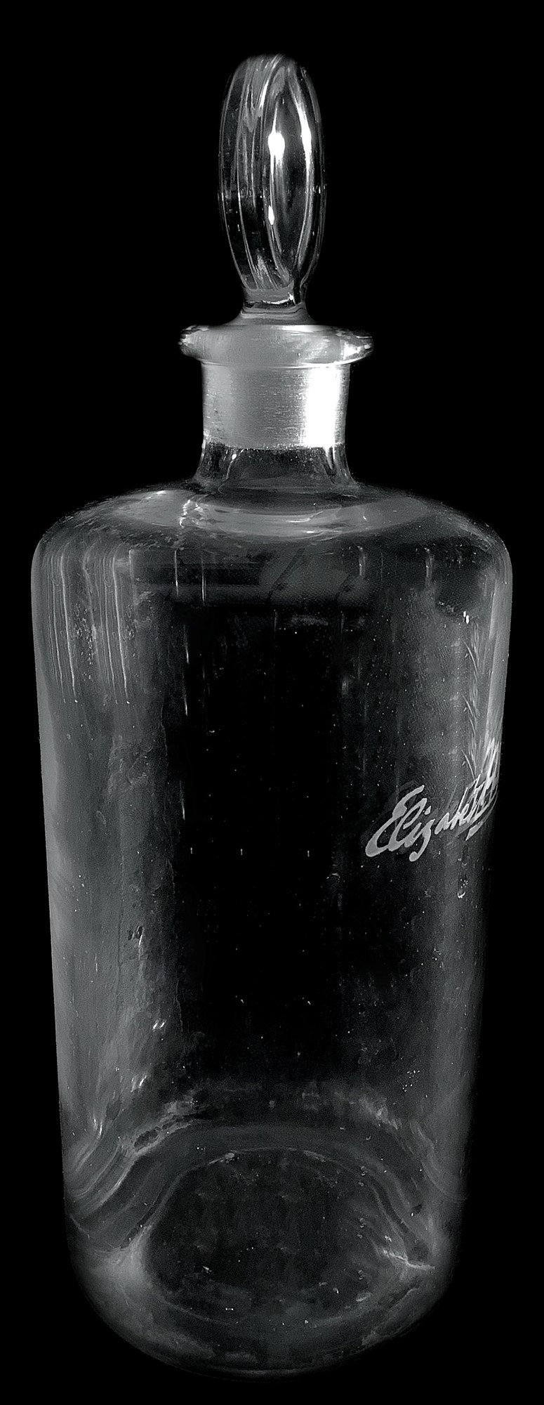 Elisabeth Arden - Coppia bottiglie tonico rosa, 20th century H cm 28 Marchio dell'azienda di cosmesi dalla Red Door, il cui primo salone di bellezza è stato inaugurato nel 1910 sulla mitica Fifth Avenue di New York, diventato oggi iconico Brend. Piccola sbeccatura sul collo di una
