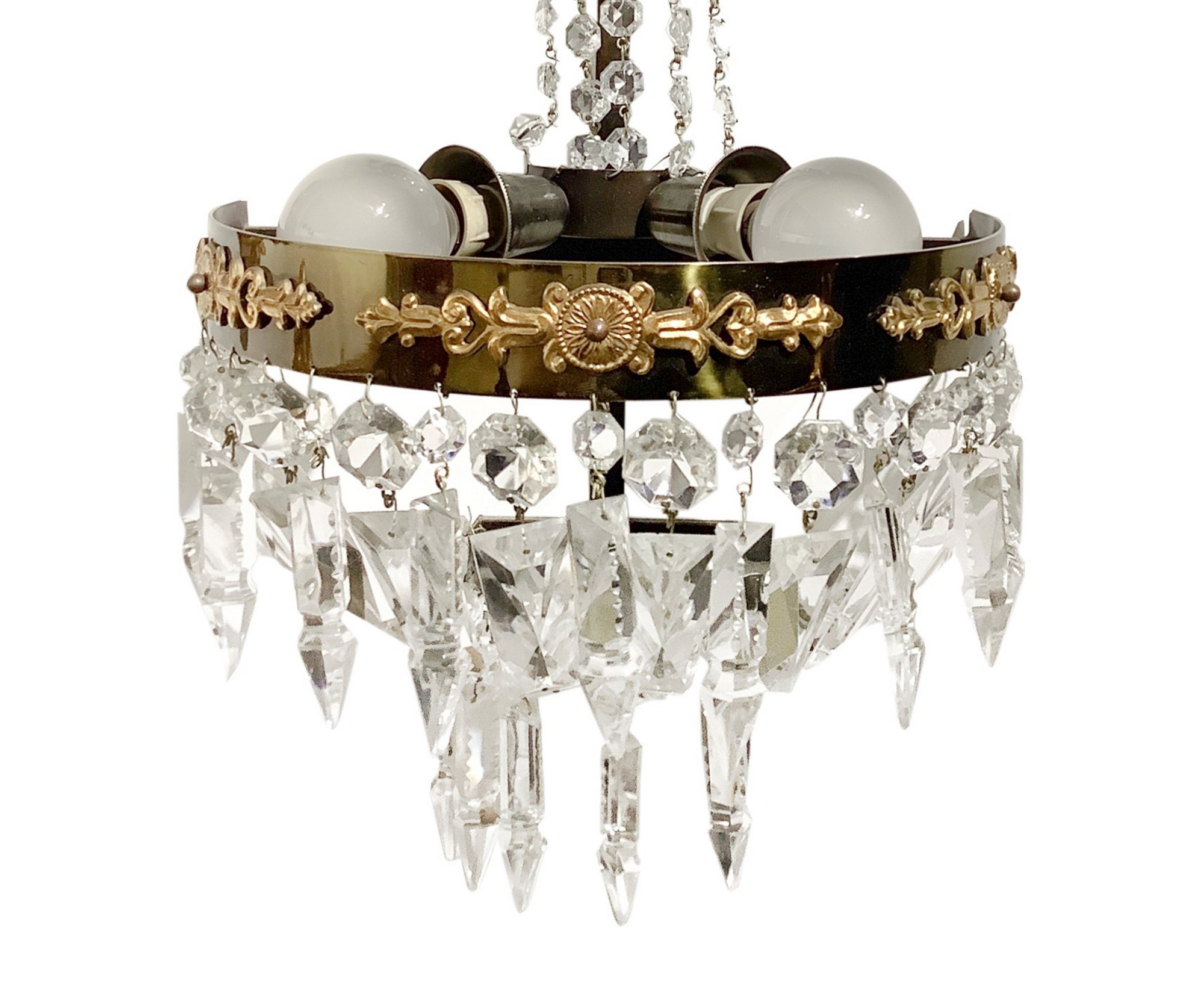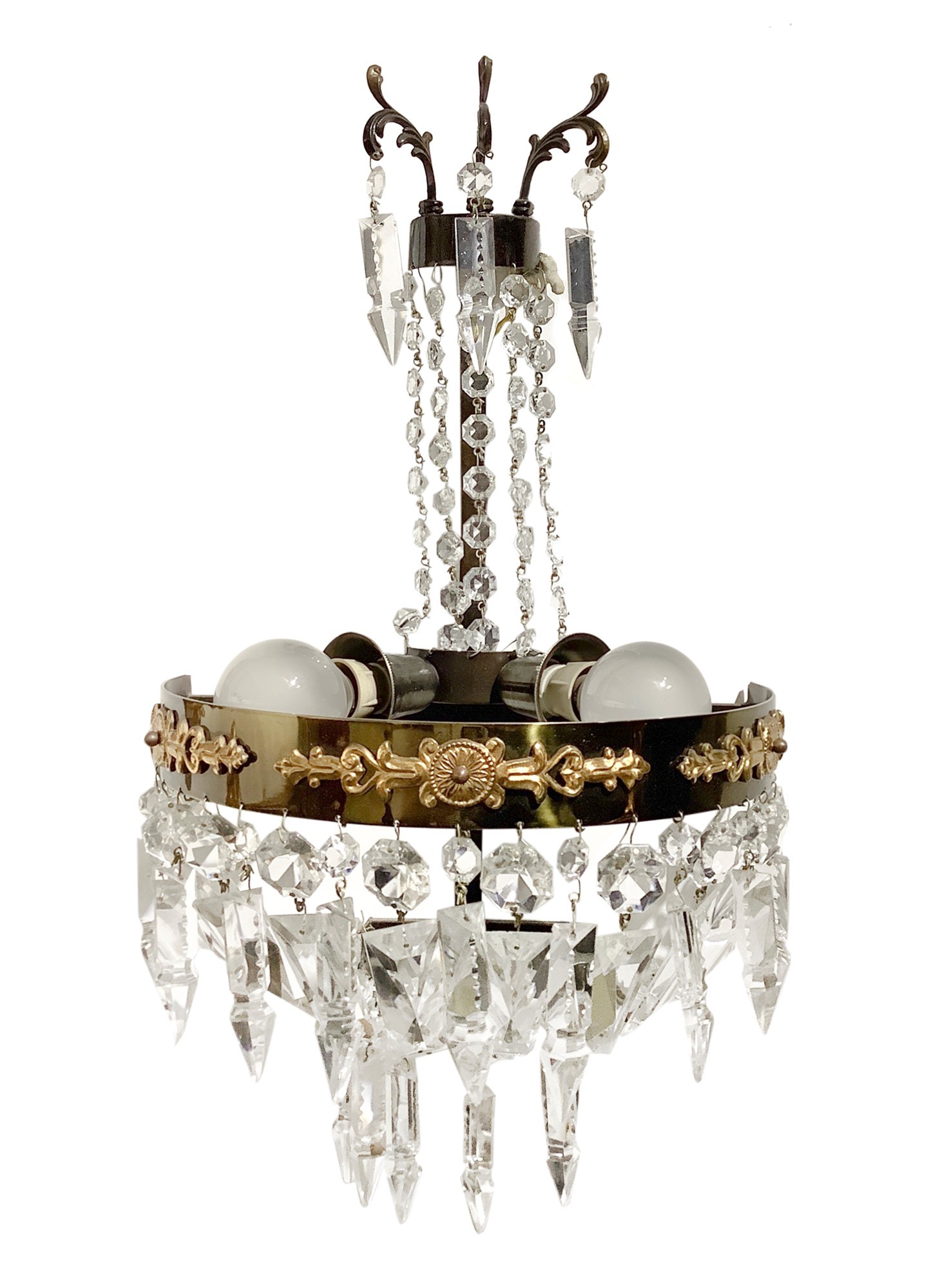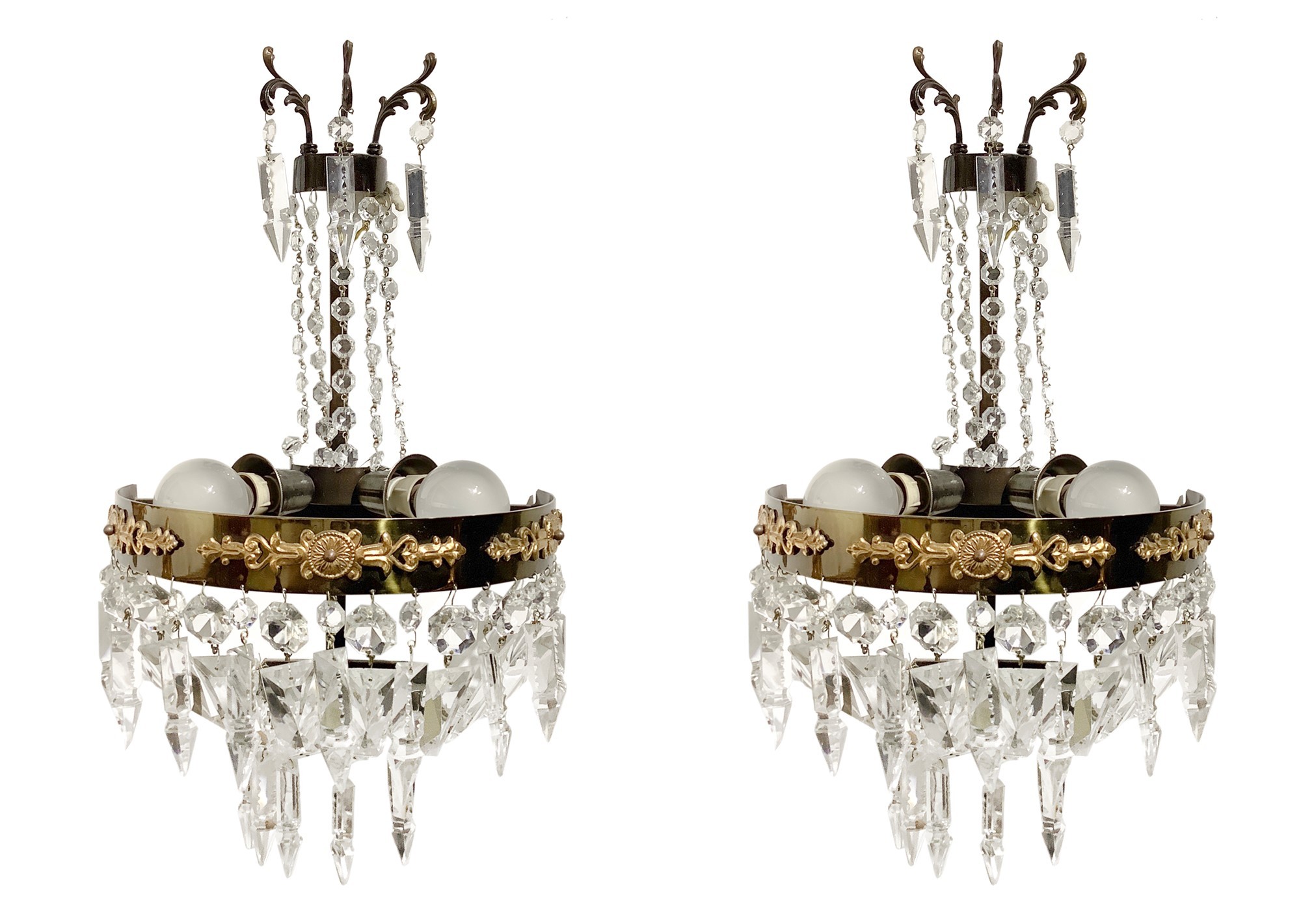 Coppia di appliques in metallo dorato e cristalli, 70's