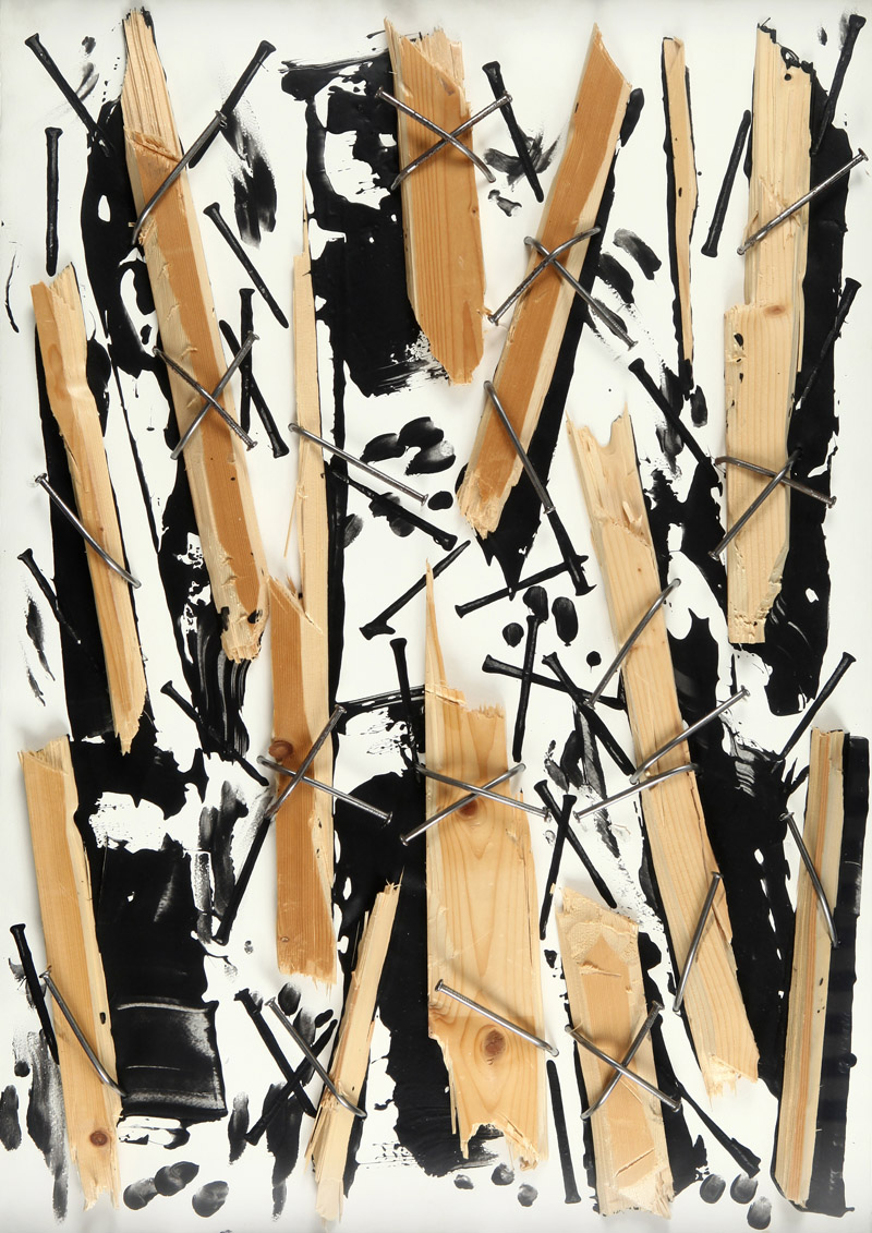 GUNTER UECKER (1930-) Splitter 1999 chiodi, acrilico su legno su carta su...