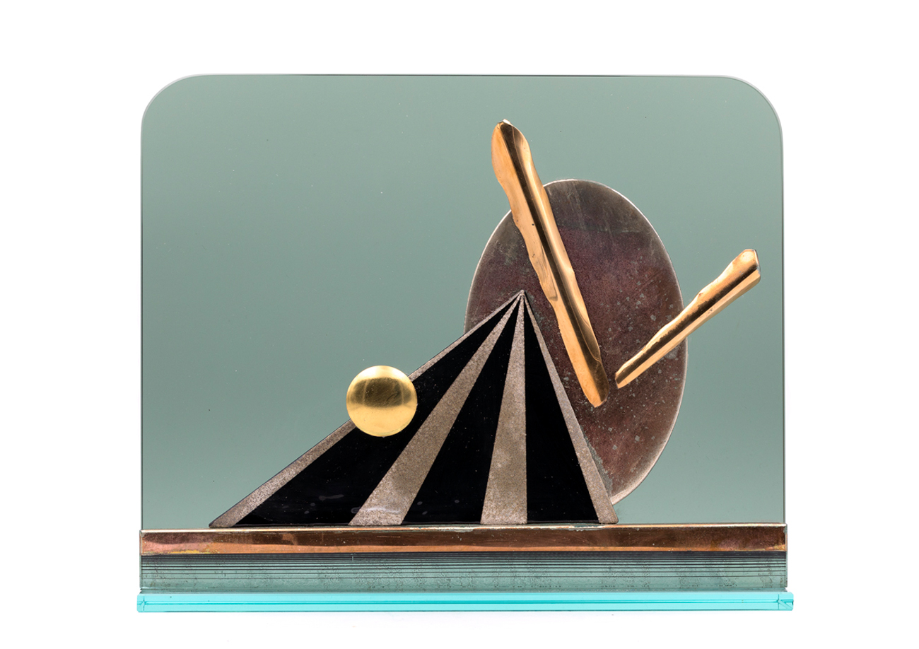 Cristallo Float, cristallo fumè e interventi in vetro nero, rame e oro zecchino