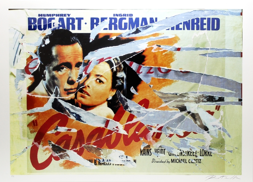ROTELLA MIMMO Catanzaro 1918 - Milano 2006 "Casablanca" Multiplo, decollage, strappi di manifesto su supporto serigrafico su cartoncino cm 100x70 del 2000/2009. Firmato sul fronte in basso a destra, tiratura P.A. a sinistra. Opera pubblicata sul catalogo "Mimmo Rotella multiplo decollage" a pag.72.