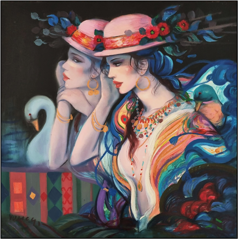 VULIC JOVAN Beji (JUGOSLAVIA) 1951 "Senza titolo" Olio su tela cm 70x70. Firmato sul fronte in basso a sinistra. Sul retro firma dell'artista e timbro della Galleria "Il Castello di Adria". Autentica su foto.