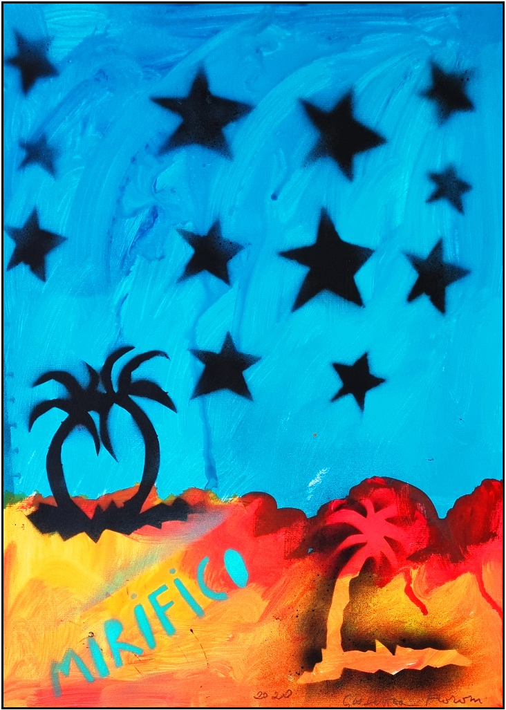 FIORONI GIOSETTA Roma 1932 "Mirifico" Acrilici su cartoncino pesante cm 50x70 del 2020. Firmato e datato sul fronte in basso a destra. Autentica su foto a cura dell'artista e timbro della Fondazione Parise/Fioroni.