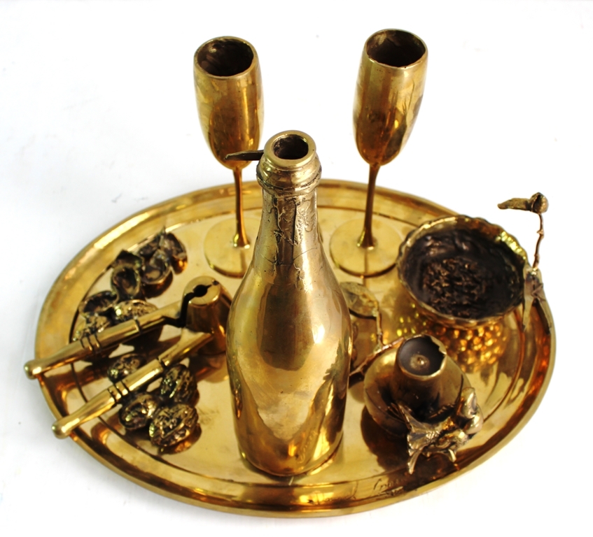 SPOERRI DANIEL Galati (ROMANIA) 1930 "L'heure bleu" Scultura in bronzo fuso a cera persa cm 43.5x33,8x30,3 del 1991. Firmata alla base, esemplare 47/75. Autentica su foto a cura dell'artista.