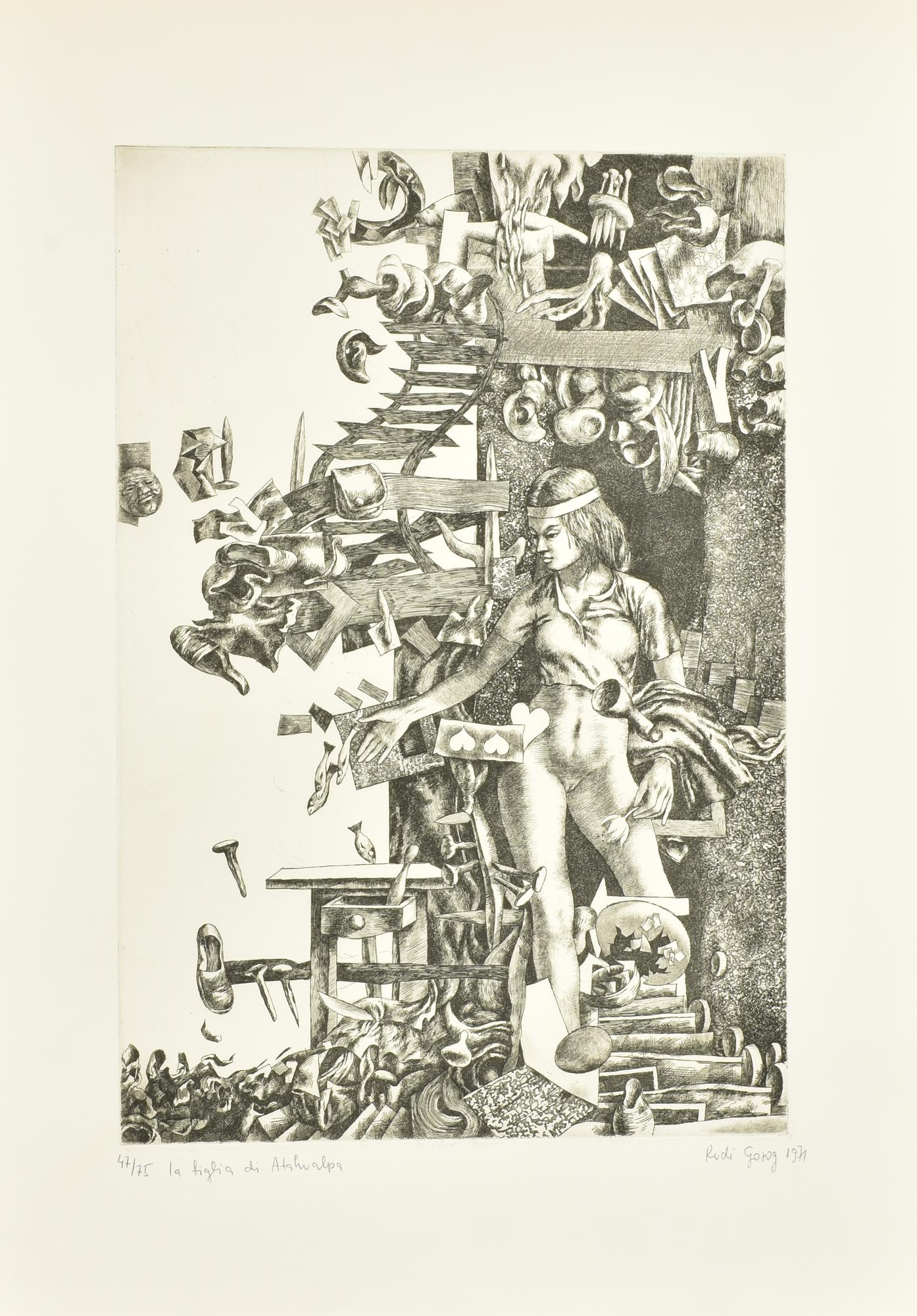 Rudi Gorog LA FIGLIA DI ATAHUALPA incisione su carta Fabriano, battuta cm...