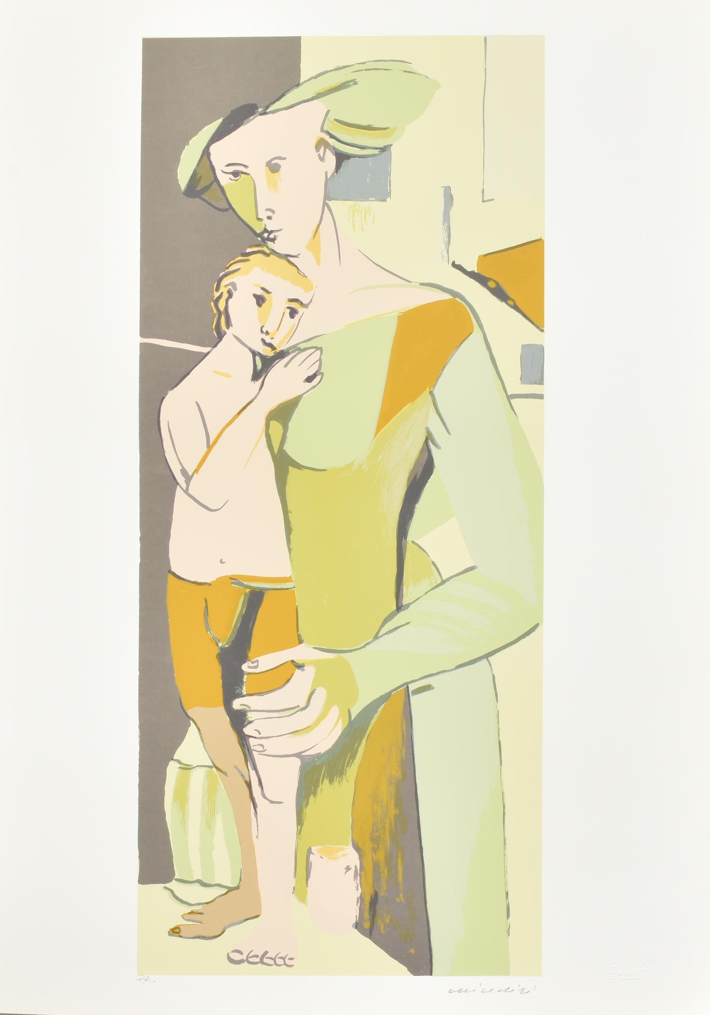 Remo Brindisi MADRE CON BAMBINO serigrafia su carta, cm 70x50; es. P.A. firma