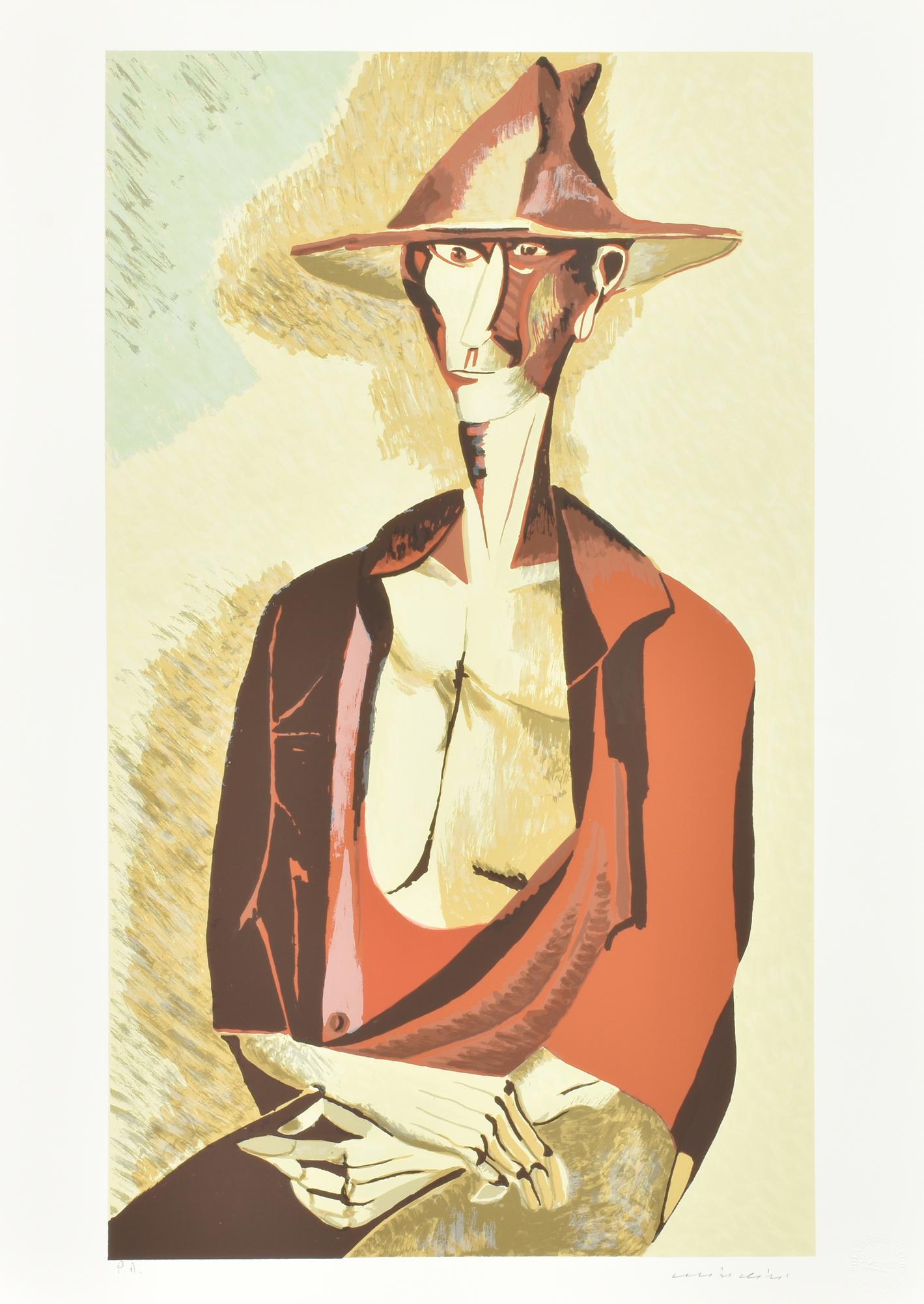 Lot 80 | Remo Brindisi RITRATTO MASCHILE serigrafia su carta, cm 70x50; es. P.A. firma