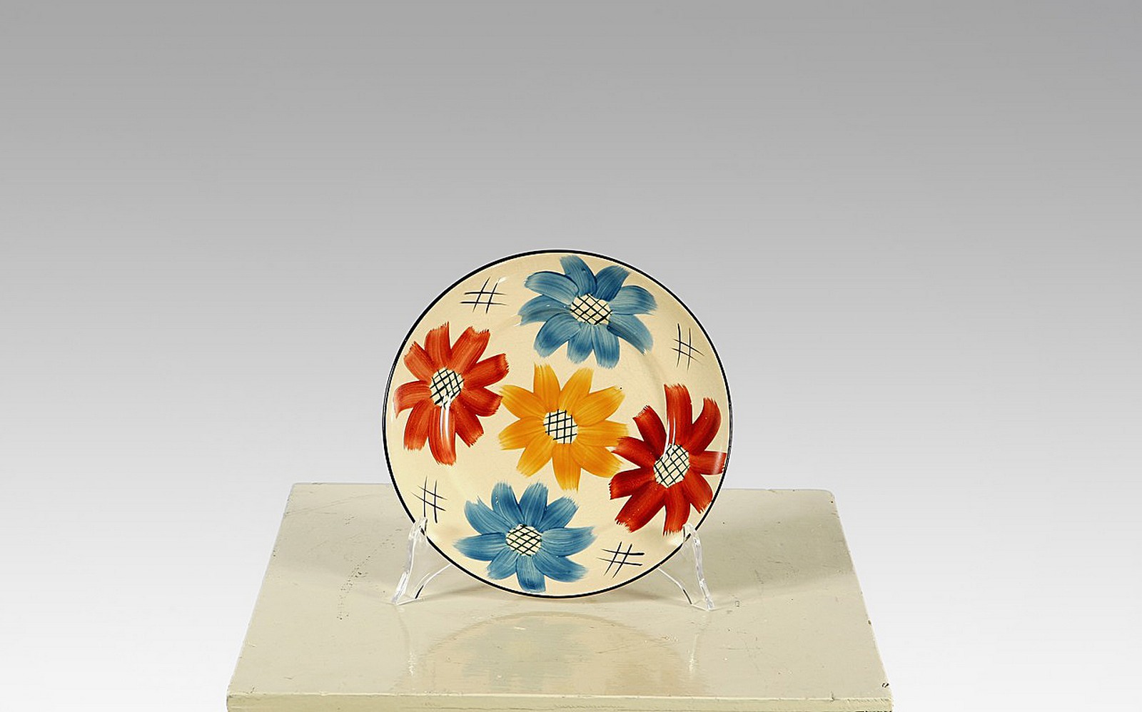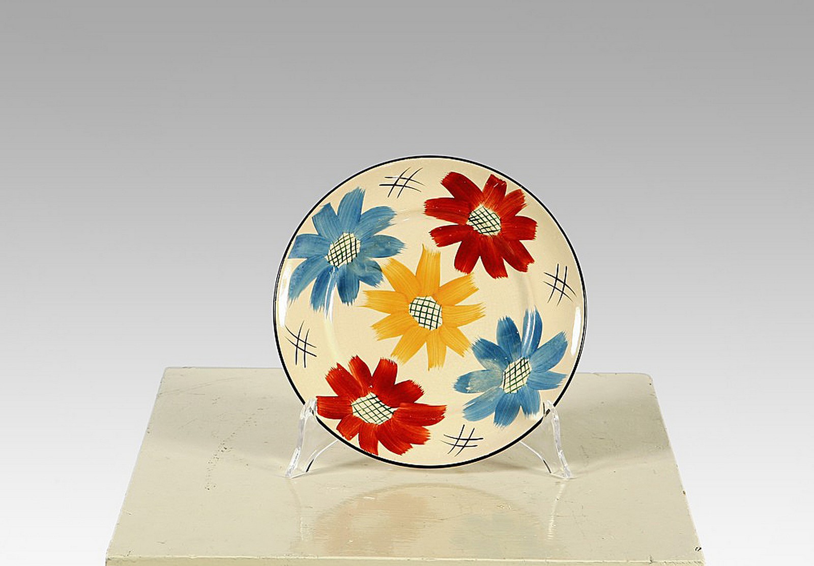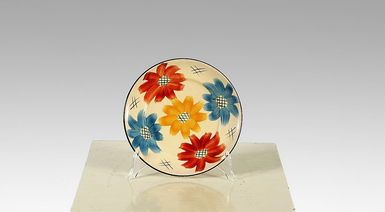 GINORI RICHARD. Due piatti dipinti S. Cristoforo dell' Era Gariboldi. Two painted plates San Cristoforo, Gariboldi era Ceramica. Cm 23x1. Marchio e data sul fondo . Marked and dated under the bottom. 1930.