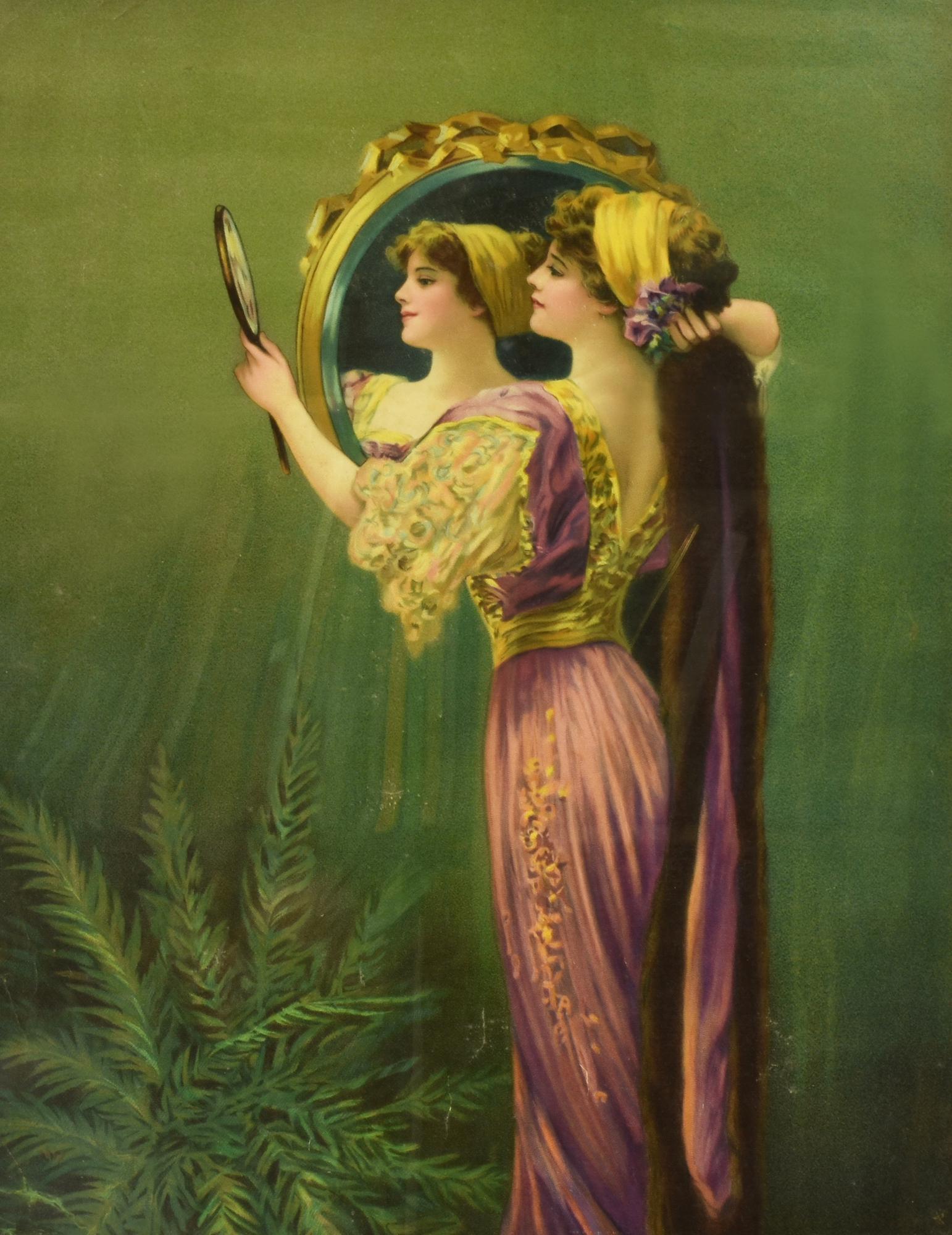 Anonimo DONNA CHE SI SPECCHIA stampa su tela, cm 50x40