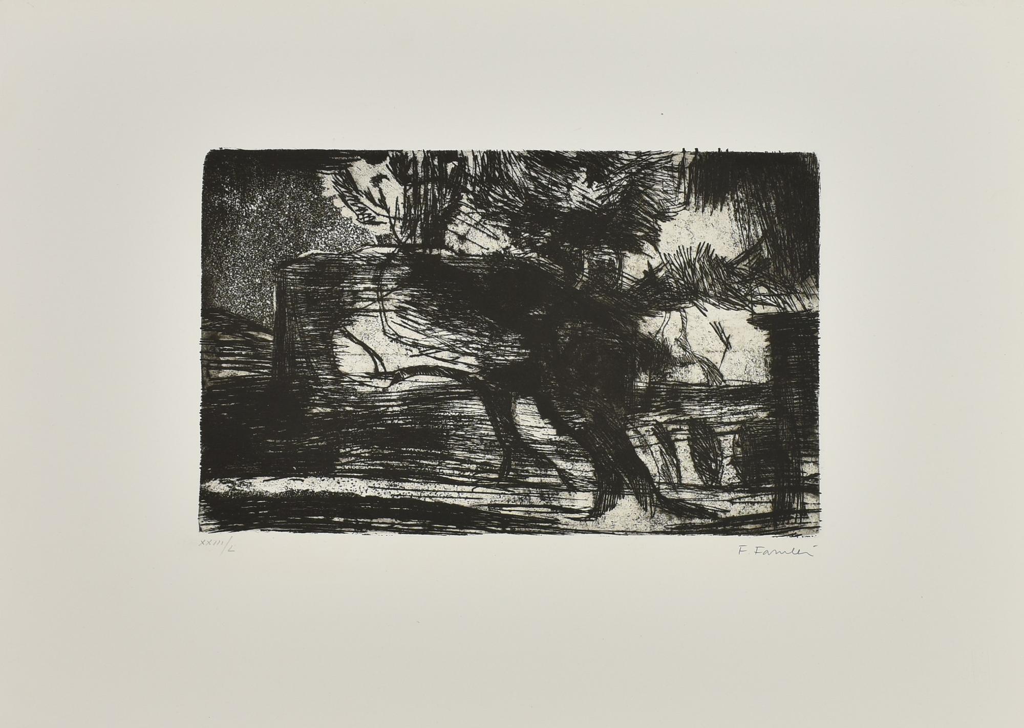 Fernando Farulli PAESAGGIO Acquaforte acquatinta, mm 250x412, su foglio cm...