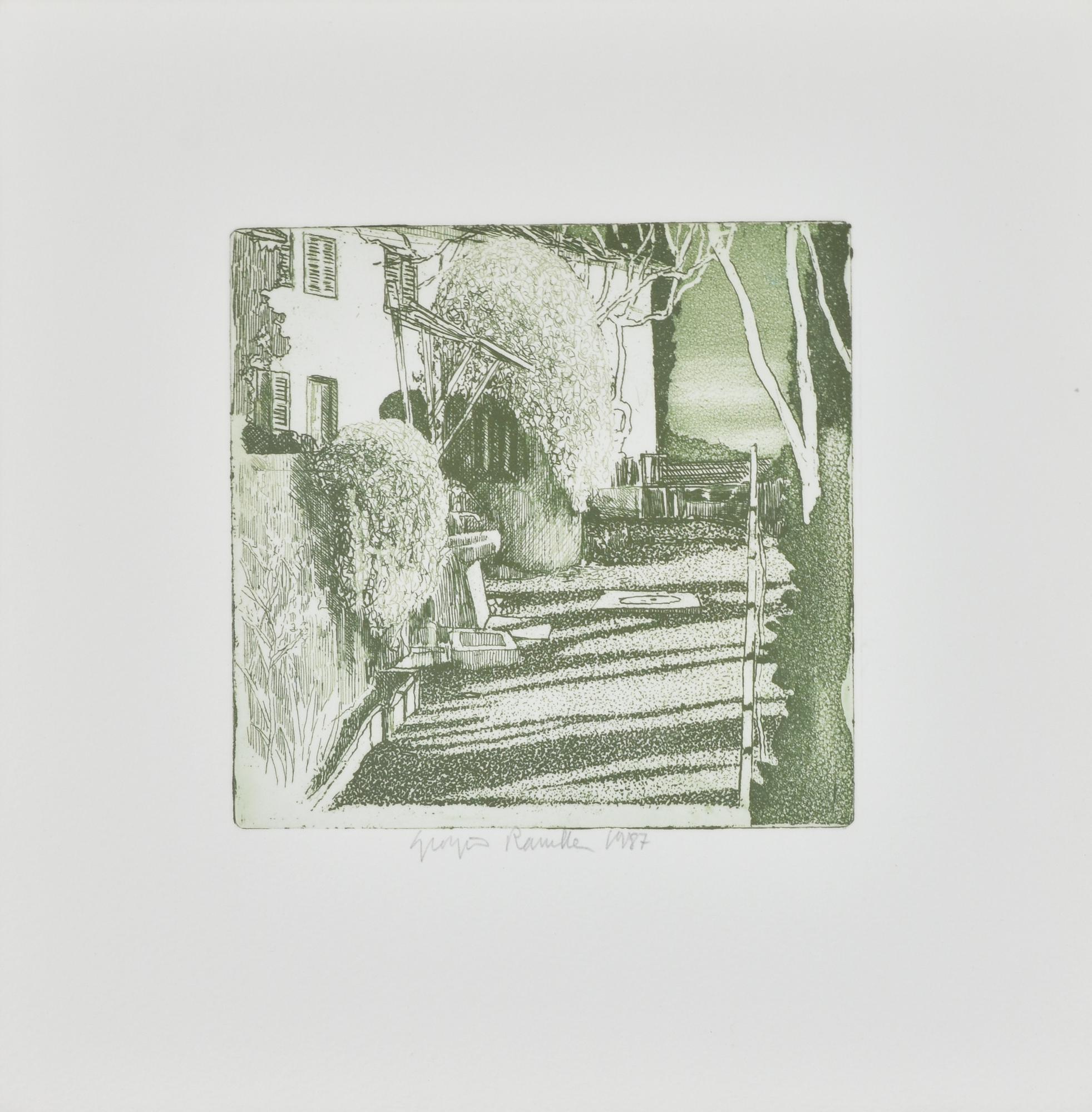 Giorgio Ramella MERIGGIO IN COLLINA incisione su carta, battuta cm 12x12, su...