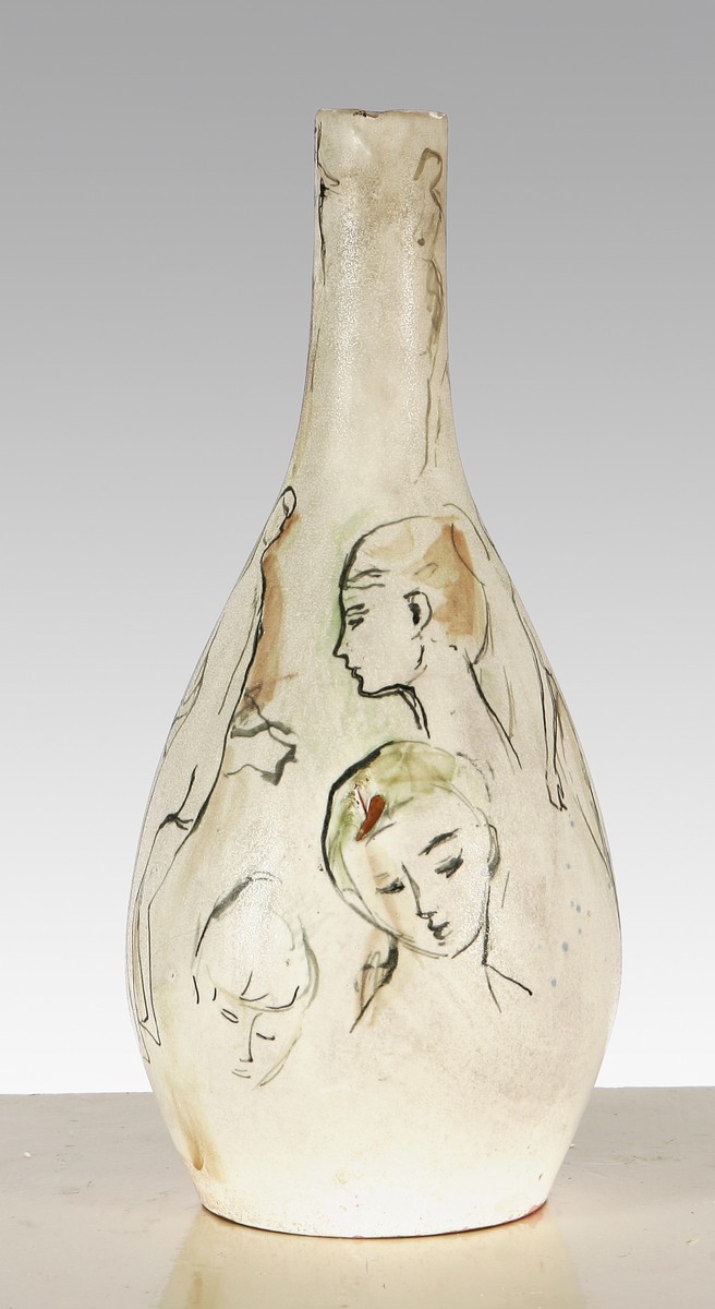 PRODUZIONE ITALIANA - ITALIAN WORK. Base di lampada in ceramica dipinta con volti e nudi di donne. Lamp base in ceramic with faces and naked women painted. Ceramica. Cm 16x37. 1950.