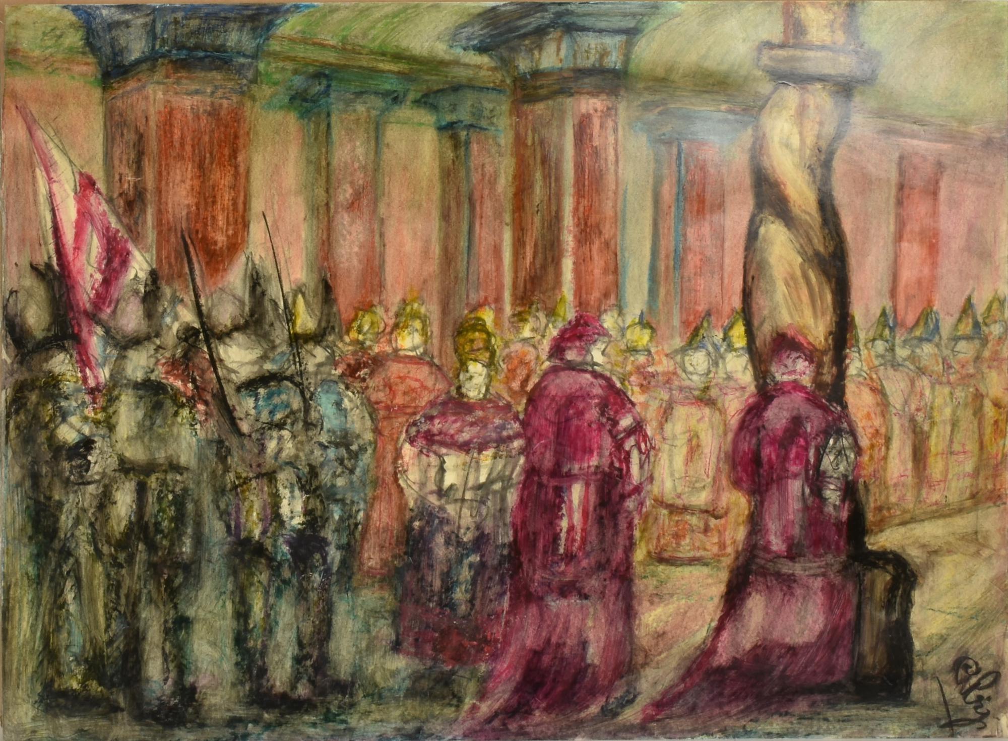 Ignoto FIGURE pastello a olio su carta, cm 51x69,5 firma