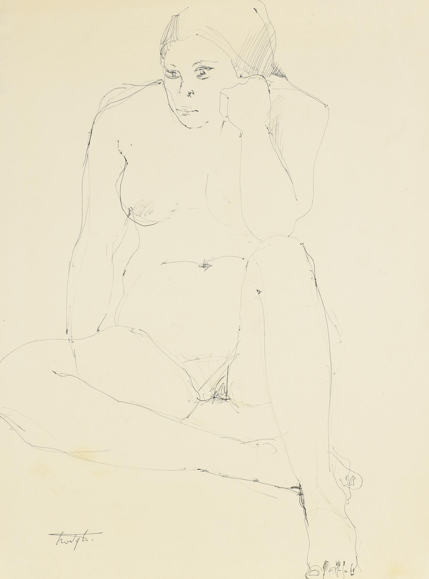 Lot 18 | Sebastiano Trovato NUDO SEDUTO china su carta, cm 50x37,5 firma