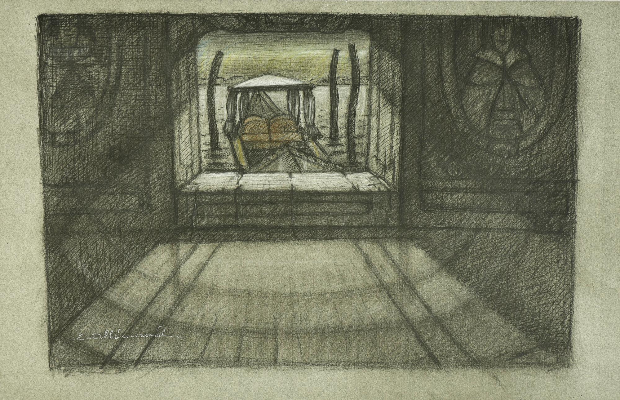 Enrico Allimandi PARTENZA IN GONDOLA tecnica mista su carta, 32x50 cm firma