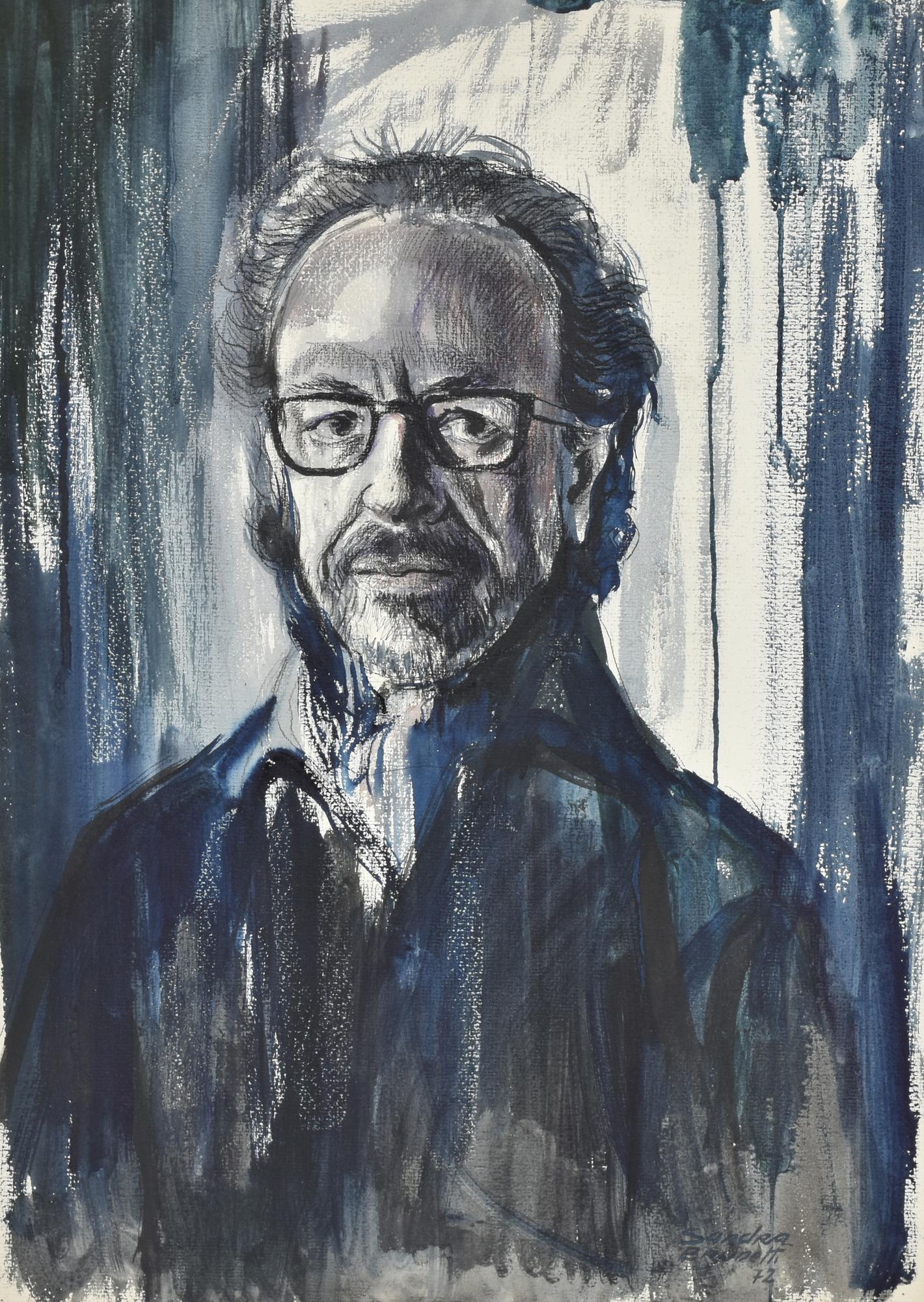 Sandra Brunetti RITRATTO MASCHILE tecnica mista su carta, cm 68x47 firma e...