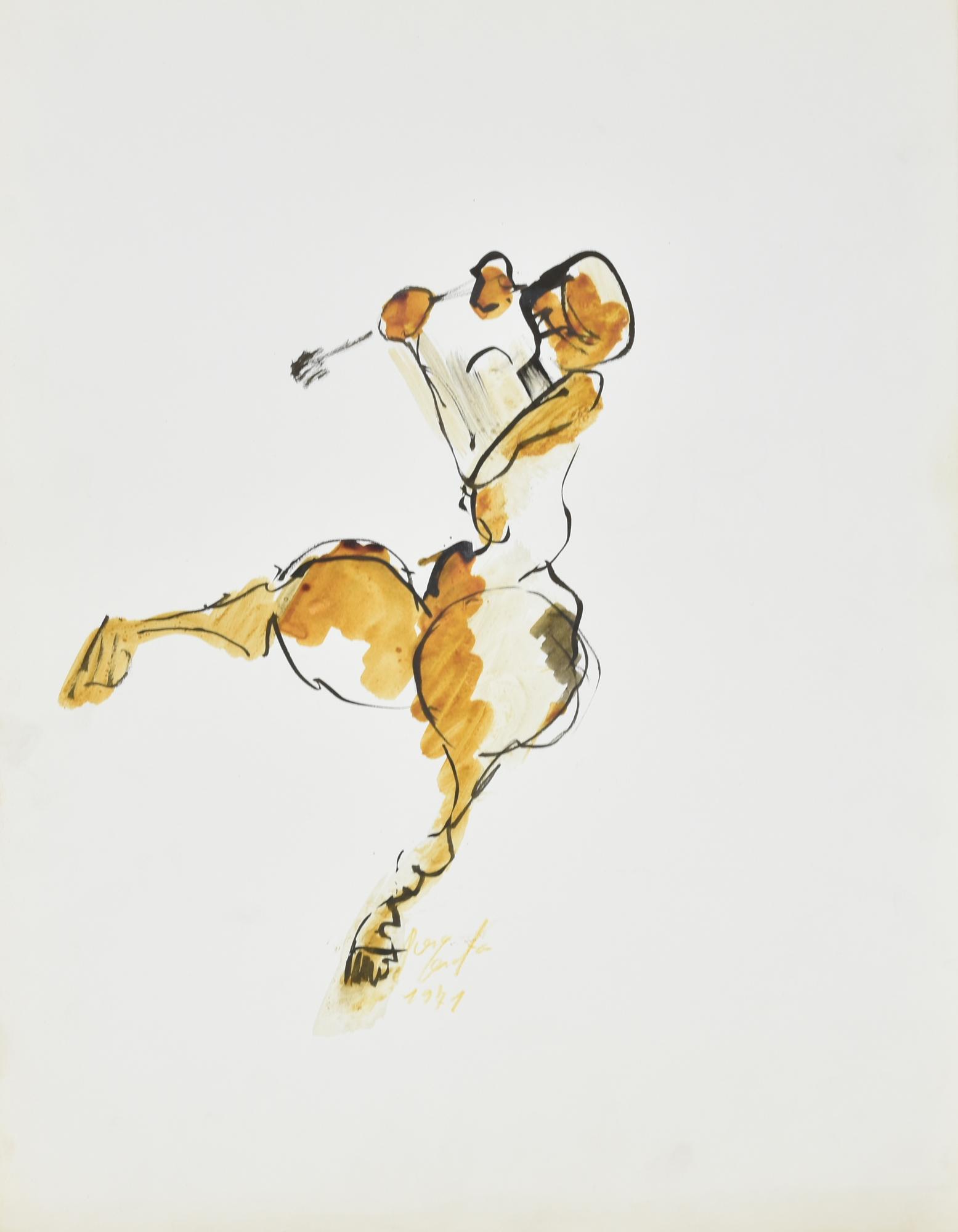 Piero Cerato FAUNO tecnica mista su carta, cm 52x40 firma e data sul retro:...