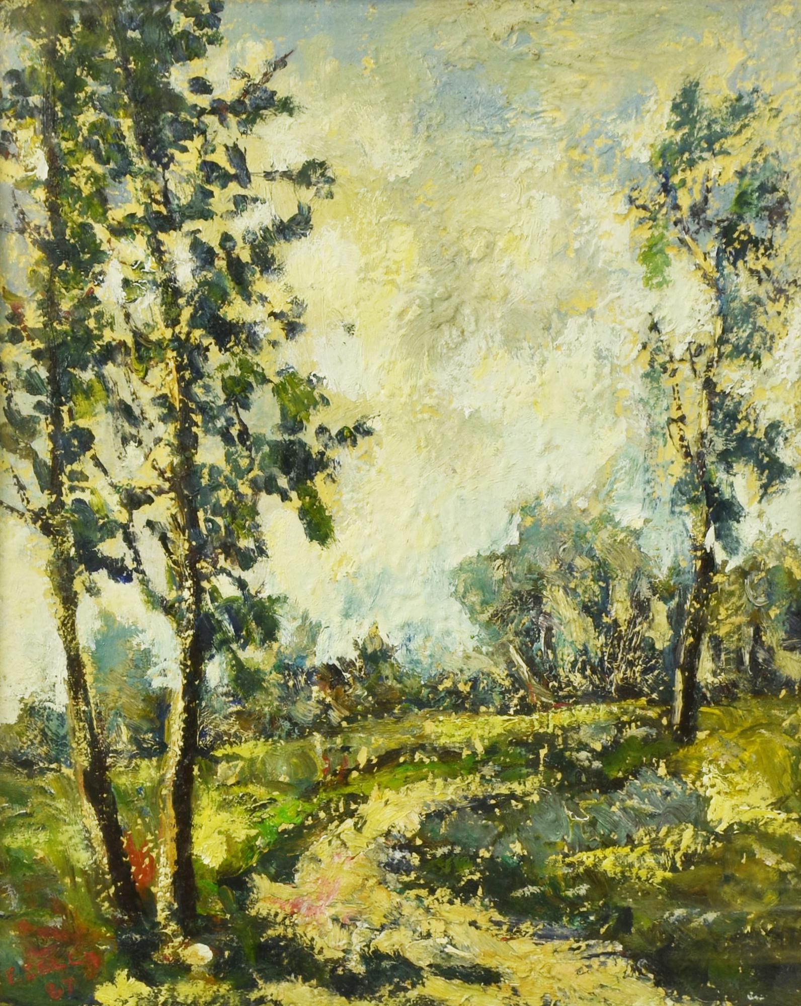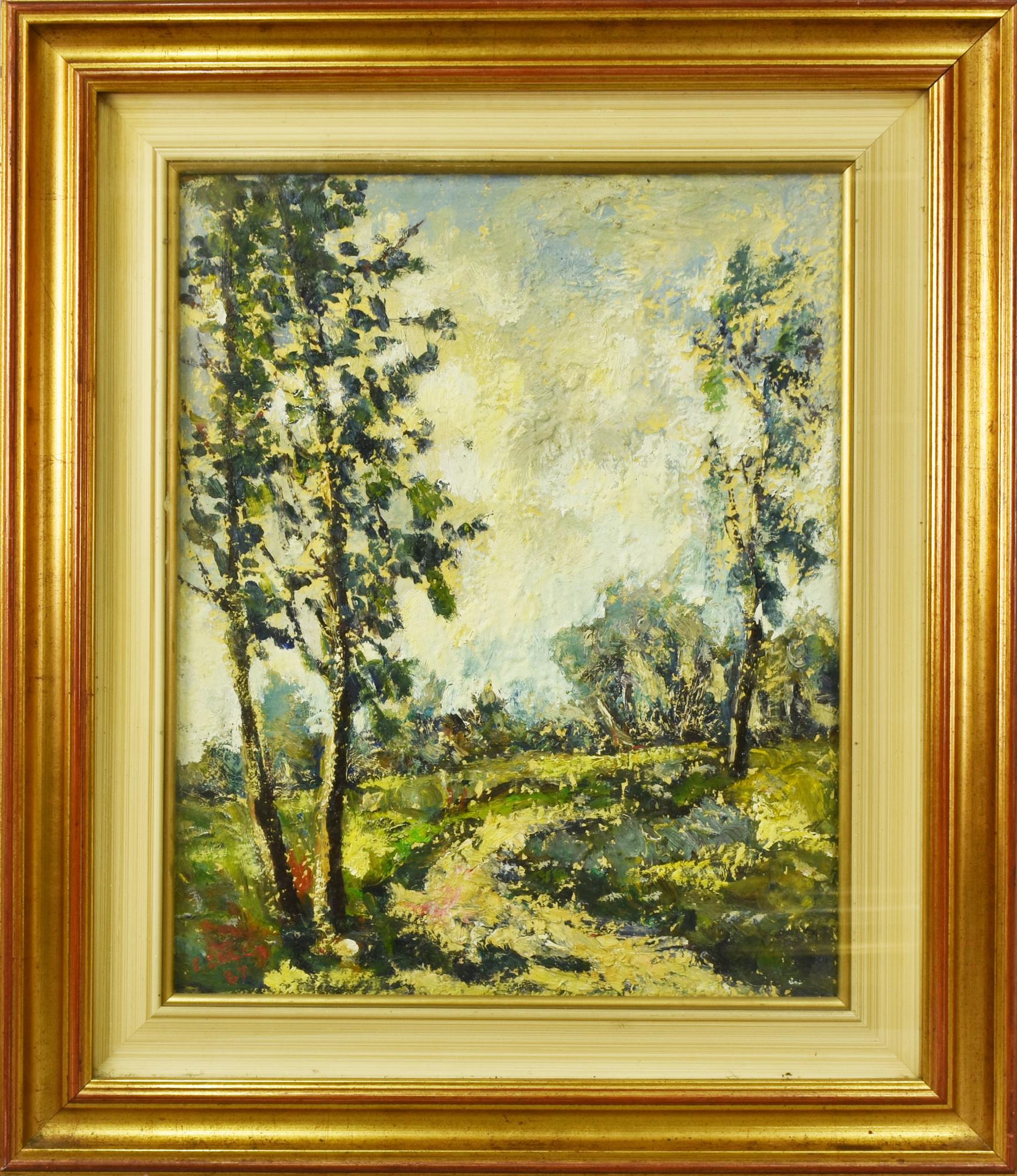 Francesco Cella PAESAGGIO olio su masonite, cm 50x40 firma e data sul retro:...