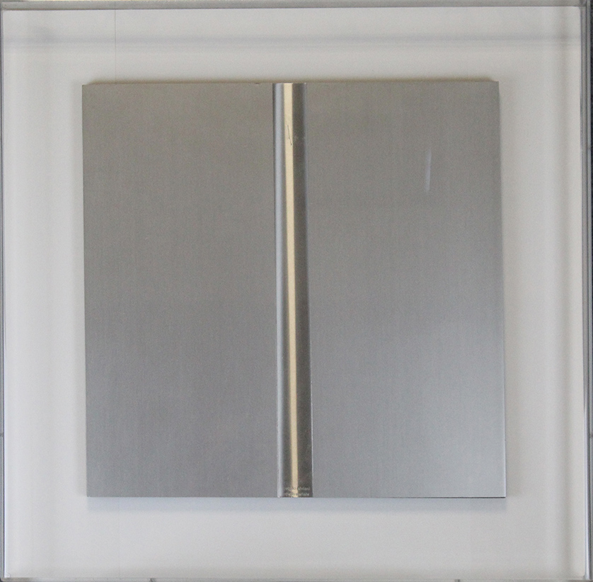 GETULIO ALVIANI, Anni '70, Scultura in alluminio, Dim. 35x35, Al fronte: firmato in basso al cento, Al verso: Esemplare 95/100, Opera conservata in teca di plexiglass