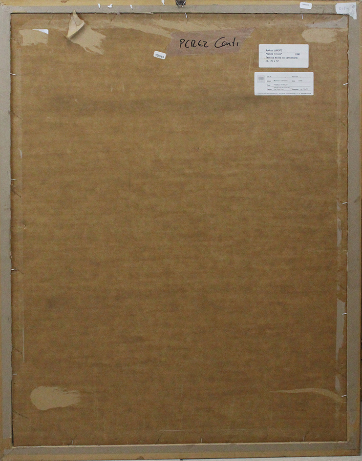 MARKUS LUPERTZ, Senza titolo, 1990, Tecnica mista su cartoncino, Dim. 76x57, Al fronte: in basso a destra firma, Al verso: etichetta Cleto Polcina Srl Roma Opera con cornice