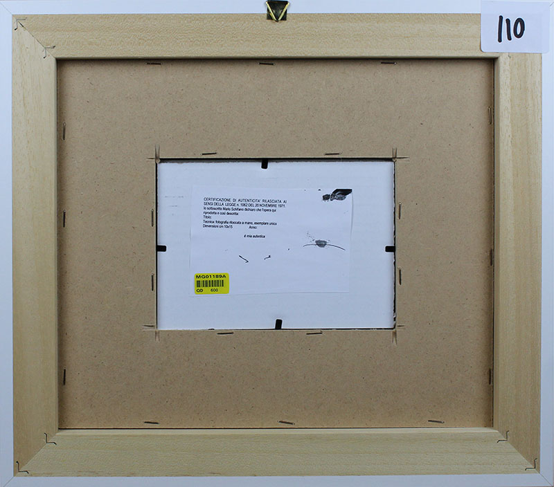 Mario Schifano, Erotika, 1990-97, Foto ritoccata a smalto, Esemplare unico, Dim. 10x15, Opera archiviata presso la Fondazione Mario Schifano " Archivio Generale dell' Opere di Mario Schifano " con n° archivio: F90-97/7485, il 24 ottobre 2007, Opera pubblicata sul catalogo " Mario Schifano fotografie ritoccate " a pag.175, volume I, Al verso: firma "Schifano", Opera con cornice