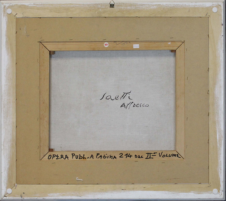 BRUNO SAETTI, "Sole", 1981, Affresco su tela, Dim. 50x60, Al fronte: firma in basso a destra, Al verso: tecnica e firma, Opera registrata al N° 1083 presso l'Archivio Bruno Saetti, Opera pubblicata sul Catalogo generale dell'opera di Bruno Saetti 2° Volume pag 214, Opera con cornice