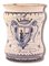 Albarello in maiolica decorato in monocromia blu con insetti sparsi ed uno stemma gentilizio sormontato da una corona marchionale