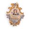 Manifattura castellana attiva tra la fine del XVIII e la prima metà del XIX secolo ( - ) Acquasantiera in maiolica decorata con elementi a rilievo e dall'effigie di una Santa affiancata dalle lettere: "S" e "C" cm 26x20