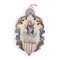 Acquasantiera in maiolica decorata con elementi in rilievo e la figura di Sant'Orsola Martire. nell'edicola centrale